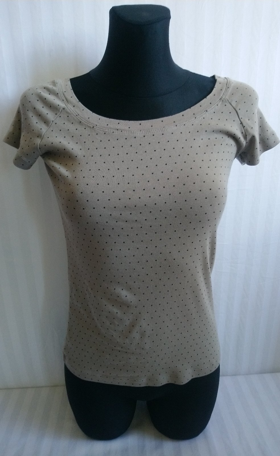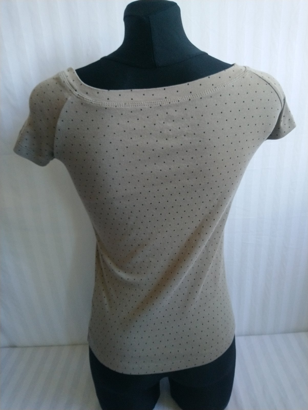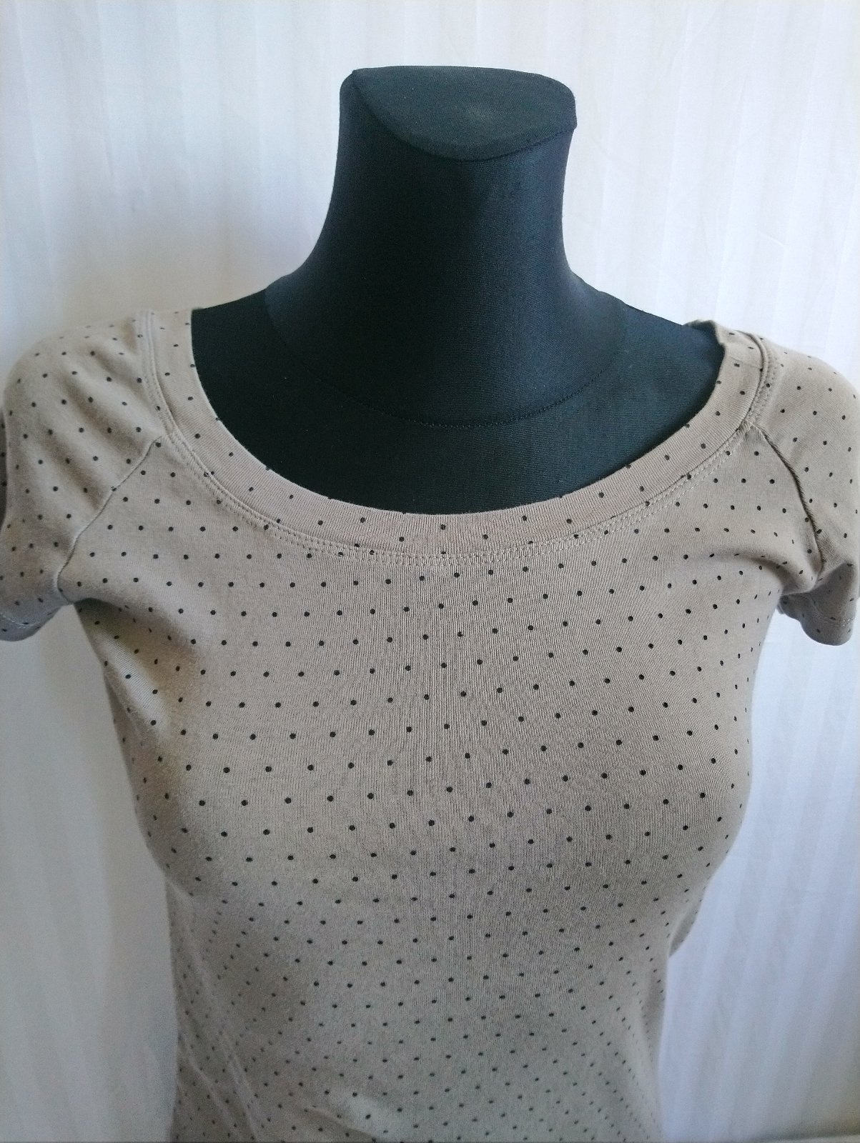 dámsky bavlnený hnedý top s malými čiernymi bodkami,