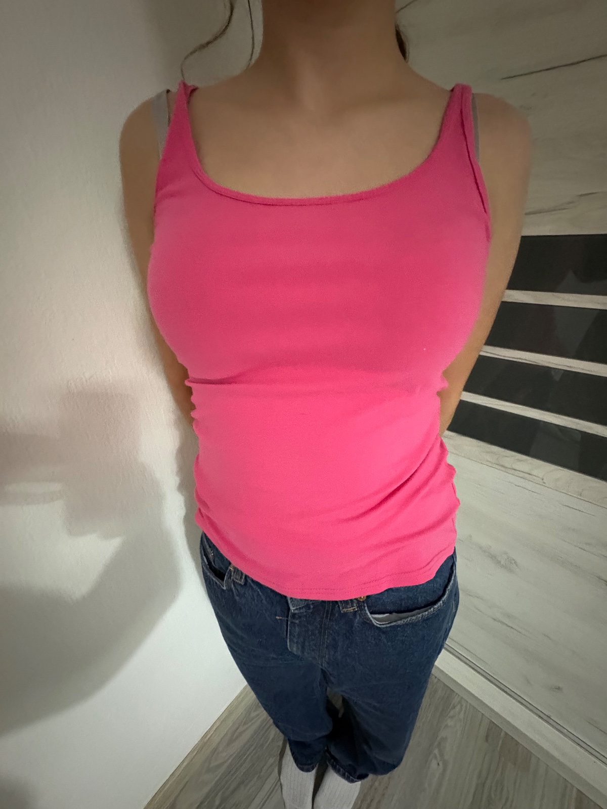 Topik okolo krku zdobené čiernymi kamienkami. Top stav, myslím ani nebol použitý. Veľmi príjemný materiál k telu, elastický povolí koľko treba, dobre sa nosí.