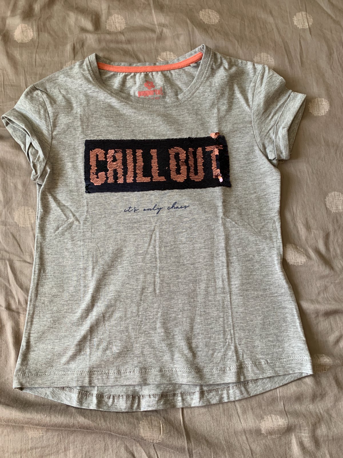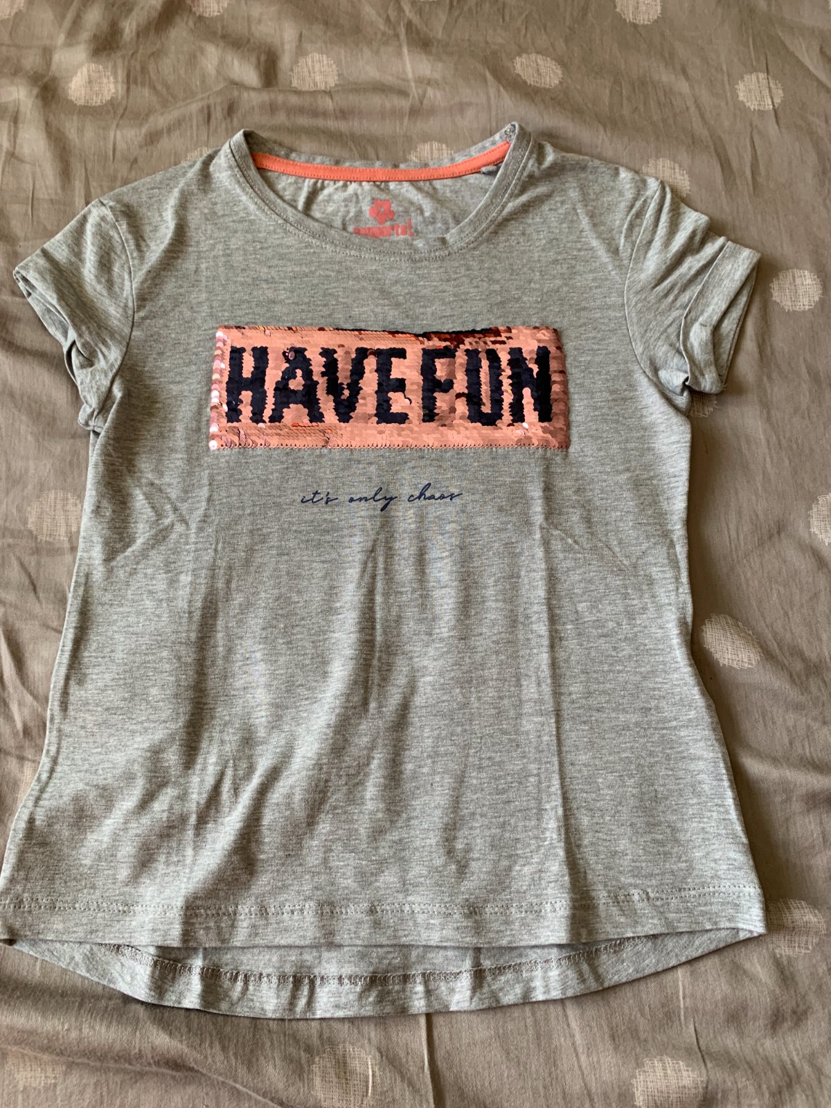 Tričko s otočnými flitrami. Veľmi dobrý stav bez poškodení.