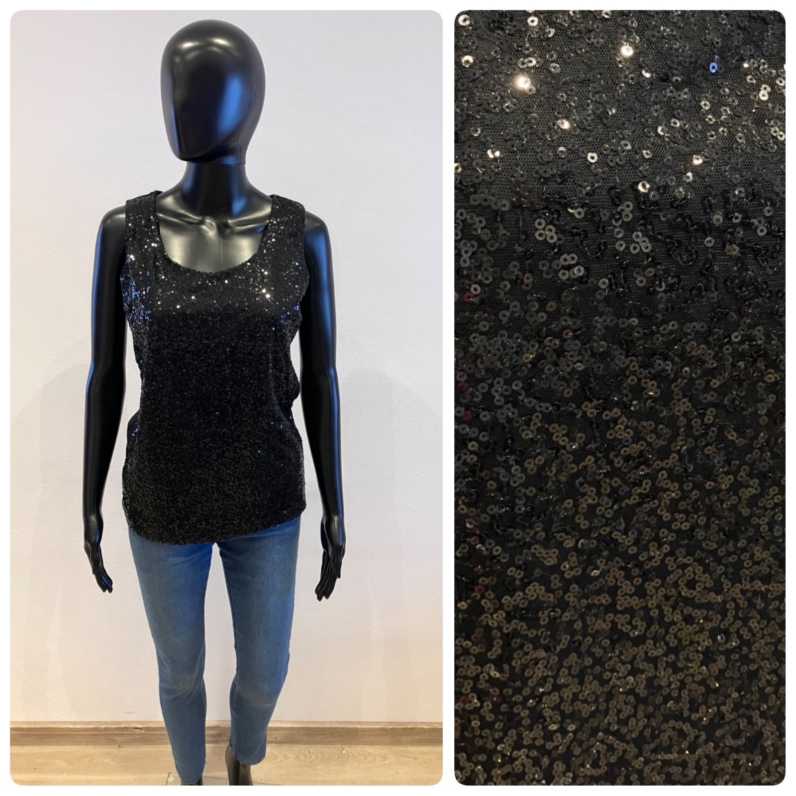 Dámsky top bez rukávov s flitrami, elastický, materiál 100%polyester.