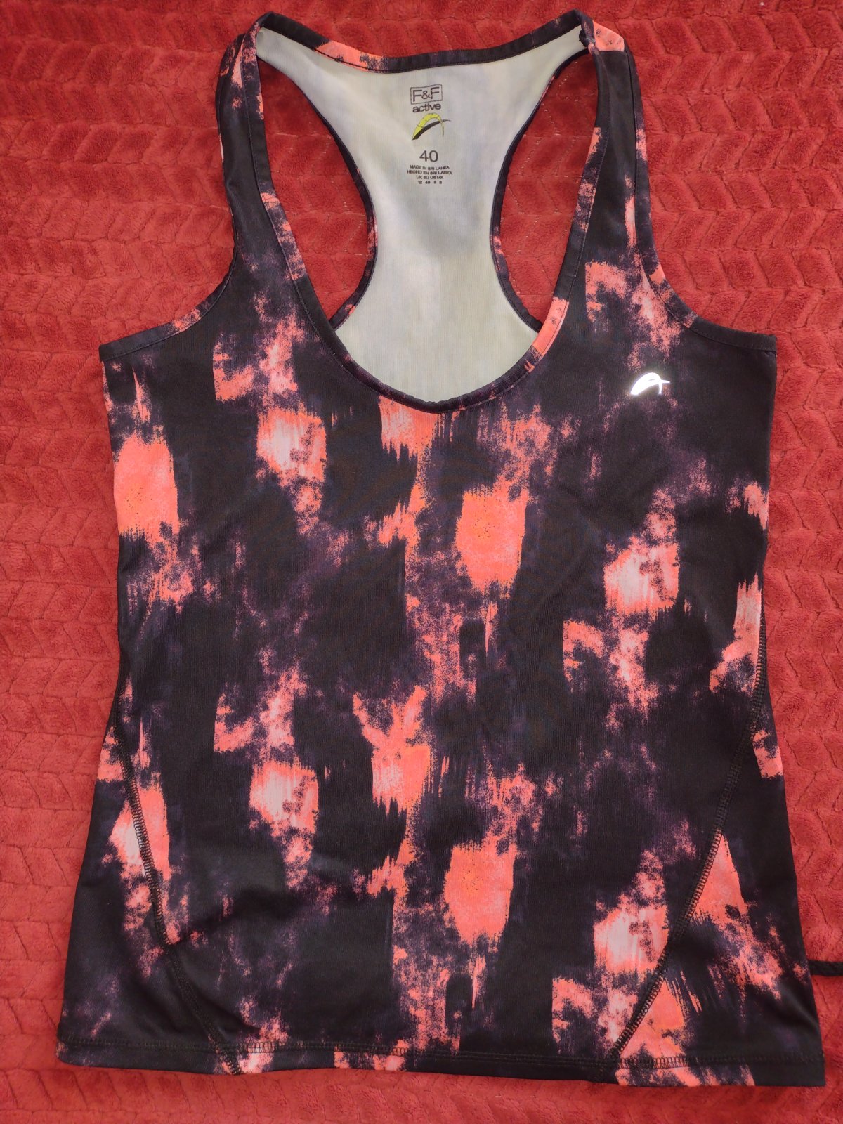 predám dámsku tuniku zn F&F Blue, veľ. písaná 40, len 2krát oblečená, ako nová, slabučko oranžovej farby so sivou potlačou, 100% viskóza, má zaujímavý strih v predu krátky a vzadu predĺžený do oblú...