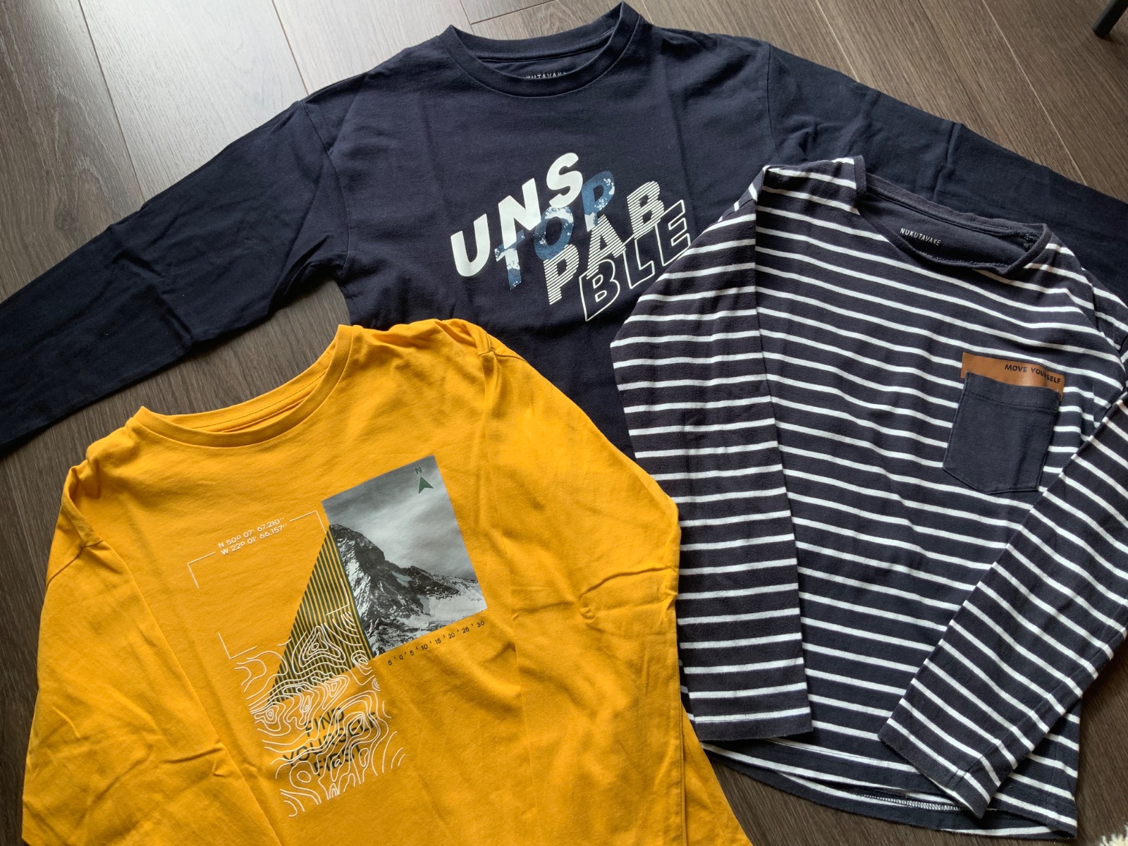 Tri krásne tričká zn. Mayoral, Nukutavake, Takko. Všetky vo veľmi dobrom stave, vhodné aj do školy. Cena je uvedená spolu za 3 ks.