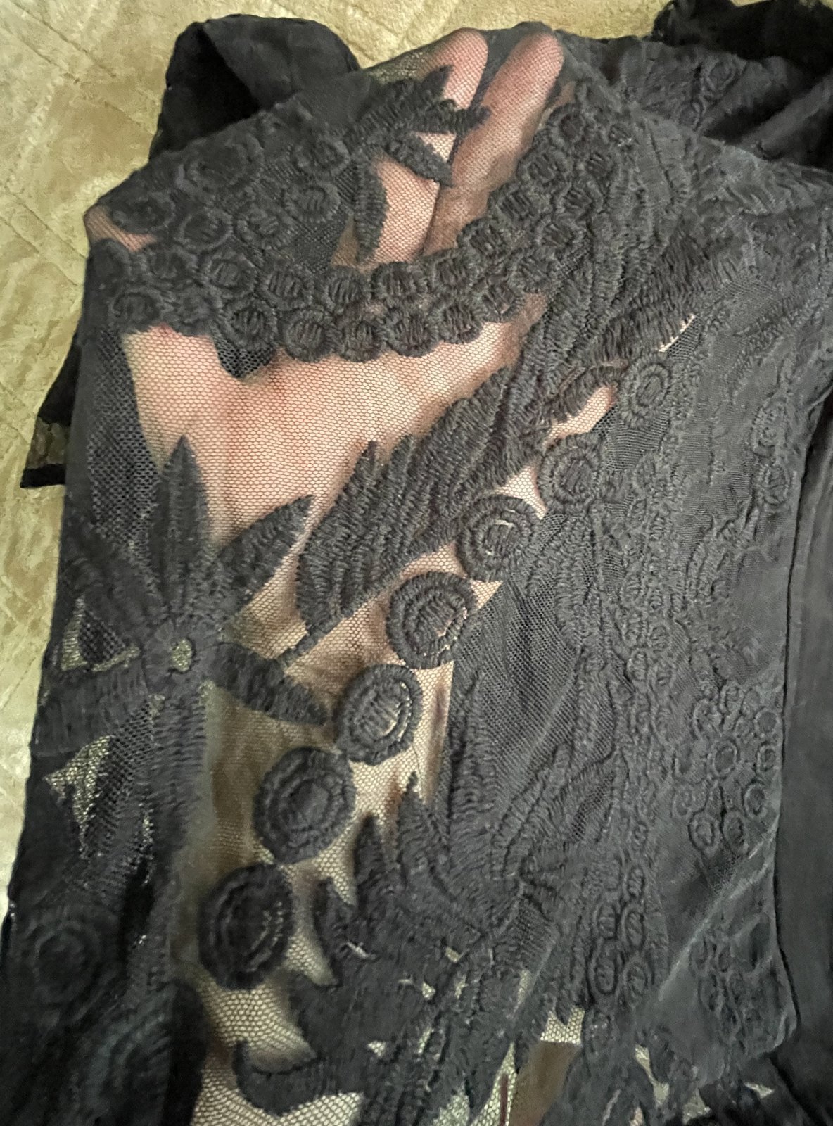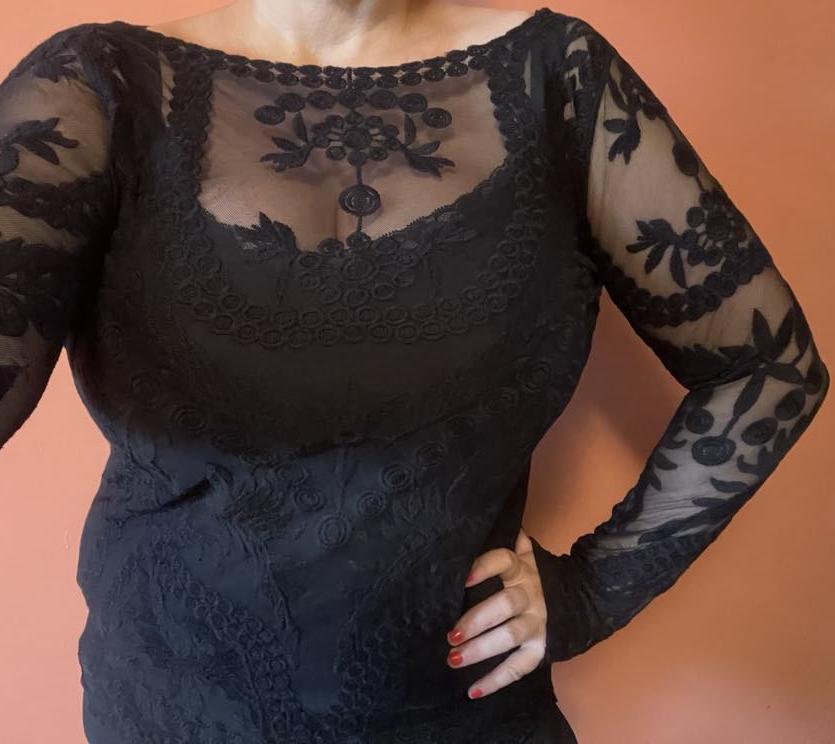 Elegantné čierne krajkové tričko s dlhým rukávom. Predná strana krajková, zadná strana čierna. Značka Rainbow Bonprix. Veľkosť 40. Rozmery: 69 cm, šírka v podpazuší 2 x 48 cm, dĺžka rukáva z podpazušia 48 cm a od ramena 62 cm.