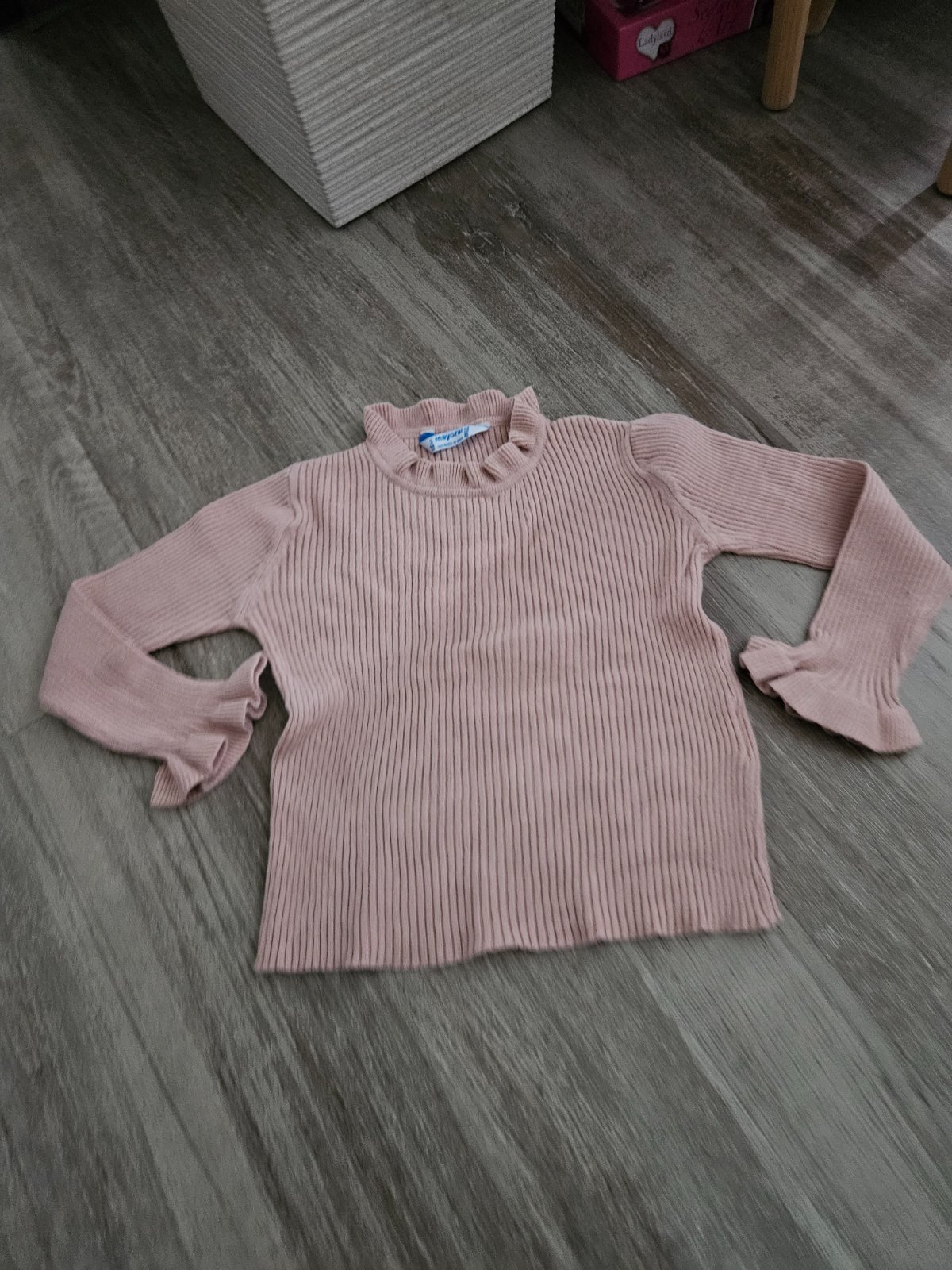 Predám ružové dlhorukávové tričko s obrázkom, ktoré má v spodnej časti volán, značky: Mayoral, veľkosť: 98