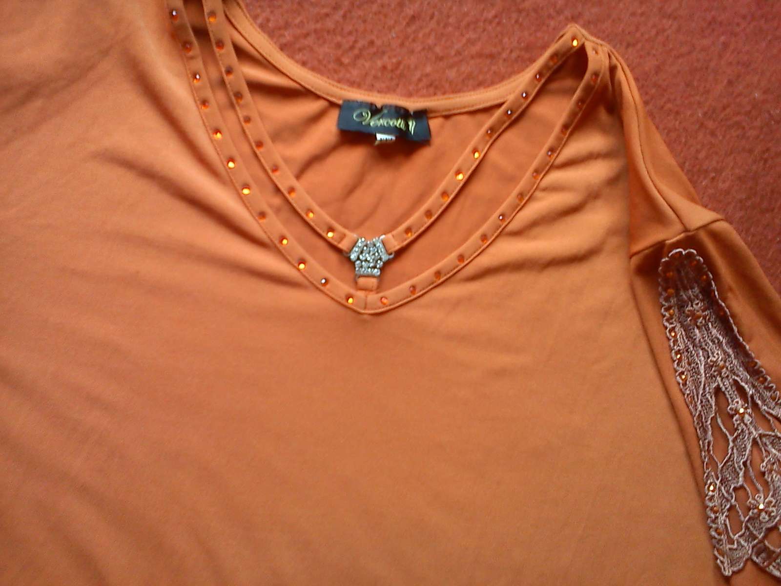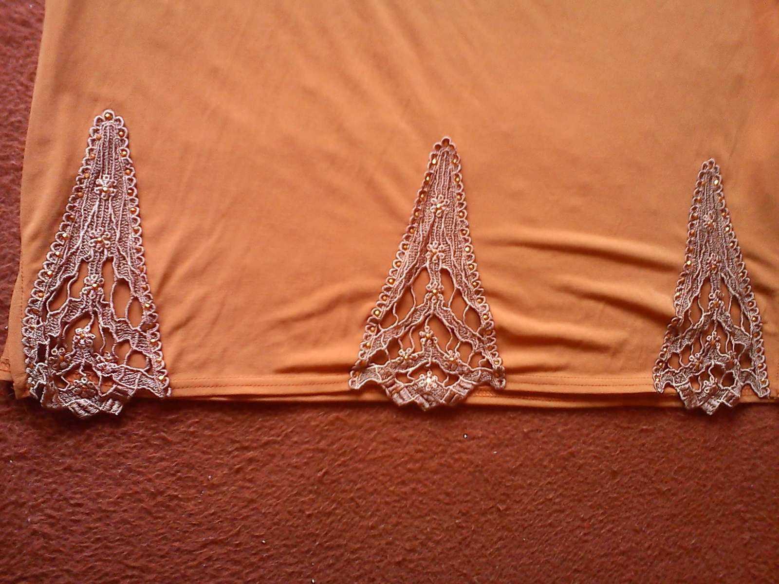 Veľmi pekné, nosené len na príležitosť, farba škoricová, všívaná krajka, prsia-58x2, dl. 62 cm