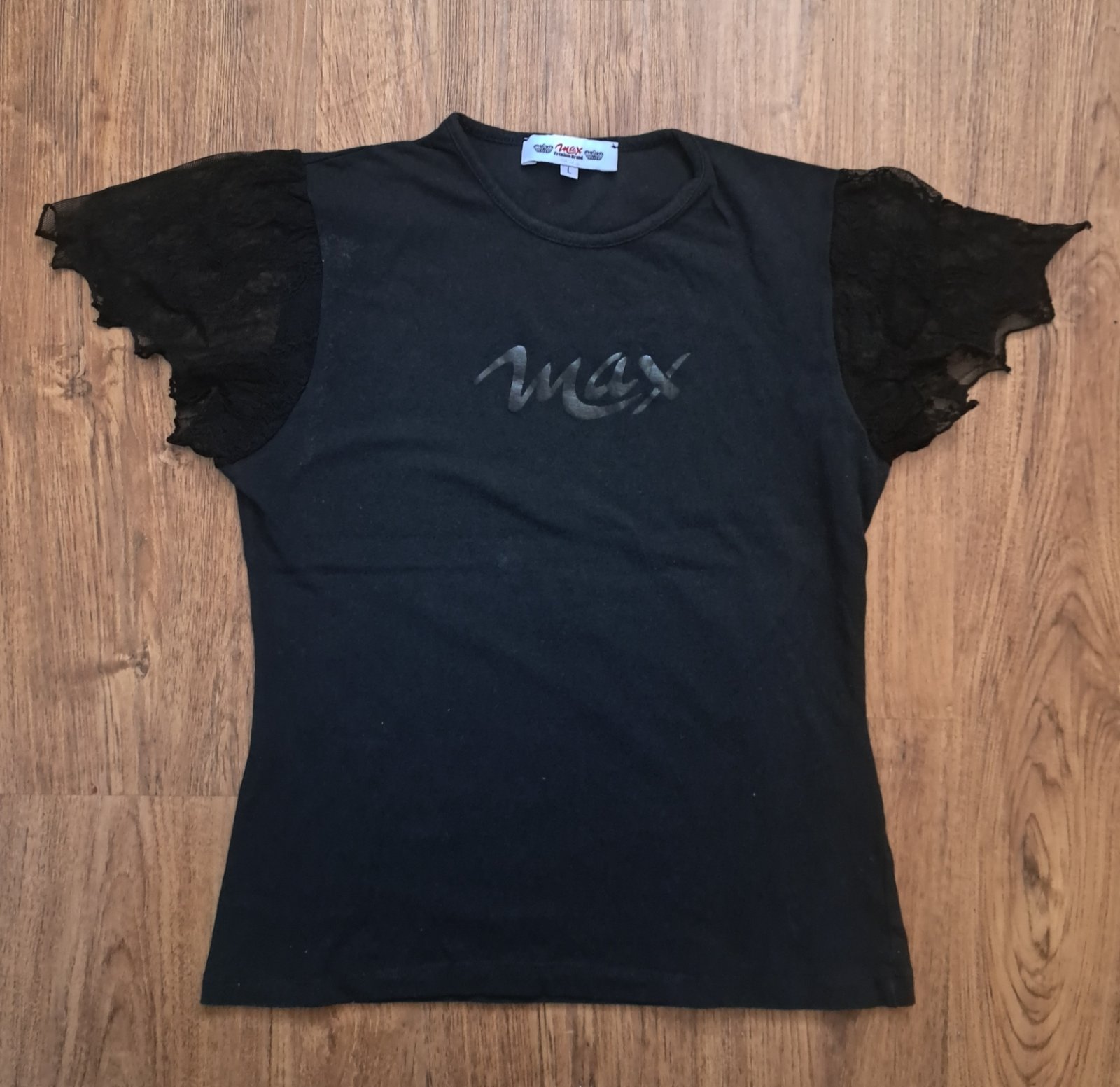 tricko so striebornymi flitrami , top stav velkost 13-14r. odhad cena: 4€ celkova dlzka 51cm sirka p.pazuskami 2x34cm H351