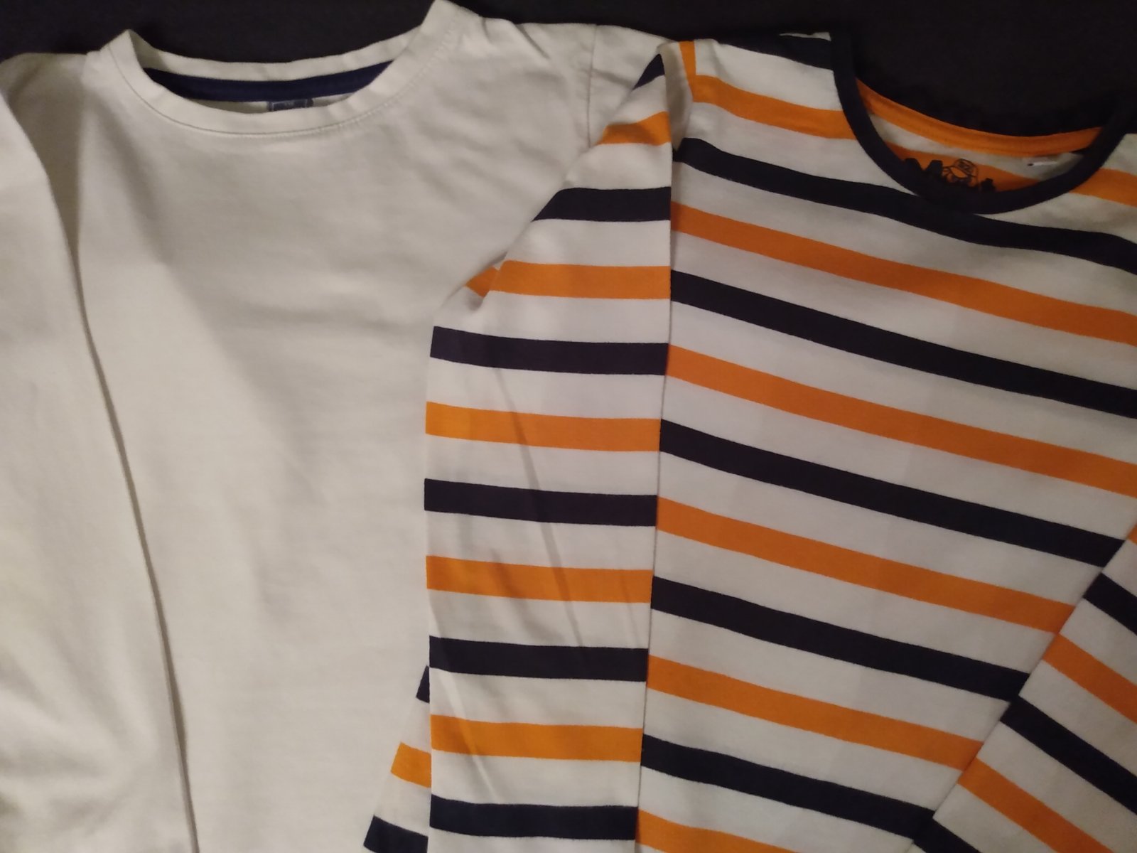 Predám 2 ks nosenych tričiek s dlhými rukávmi a potlačou. Rozmery: dĺžka 44cm, rukáv 39cm, šírka 33cm x 2. Cena 5€ + poštovné.
