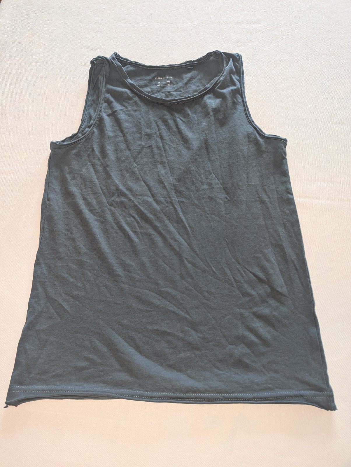 Letné tielko s neopracovanými okrajmi. Takmer nenosené. Možno nosiť aj ako spodné tielko na zimu. Mám aj zelené. Pri odbere oboch, cena za jedno 2e.