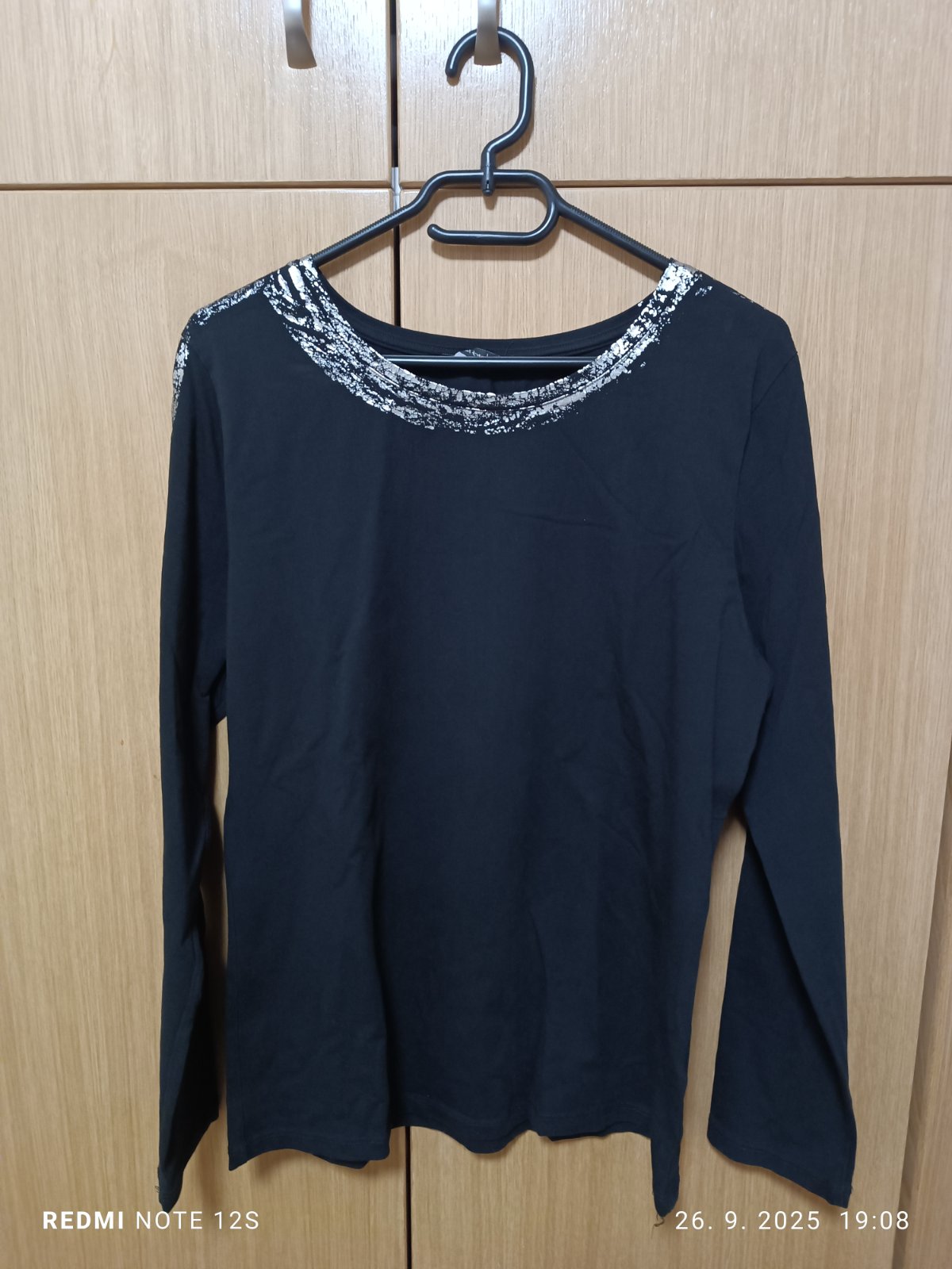 Dámske tričko s dlhým rukávom, zachovalé, veľkosť 46,ale nezodpovedá, dĺžka 60cm, šírka 47cm, rukáv 61cm, rameno 8,5cm