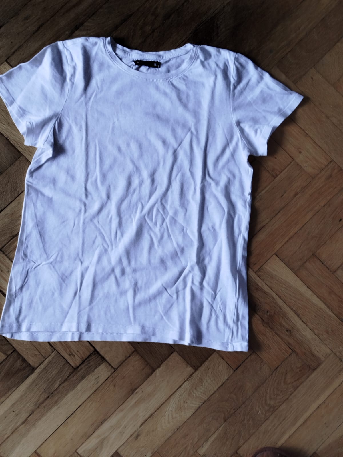 Párkrát oblečené tričko s krátkym rukavom. Veľkosť XS. Dĺžka 57cm, šírka pod pazuchou 2x40cm. Kľudne pozrite môj bazár mám veľa krásnych aj nenosených dospelých aj detských veci. Dako sme toho mal...