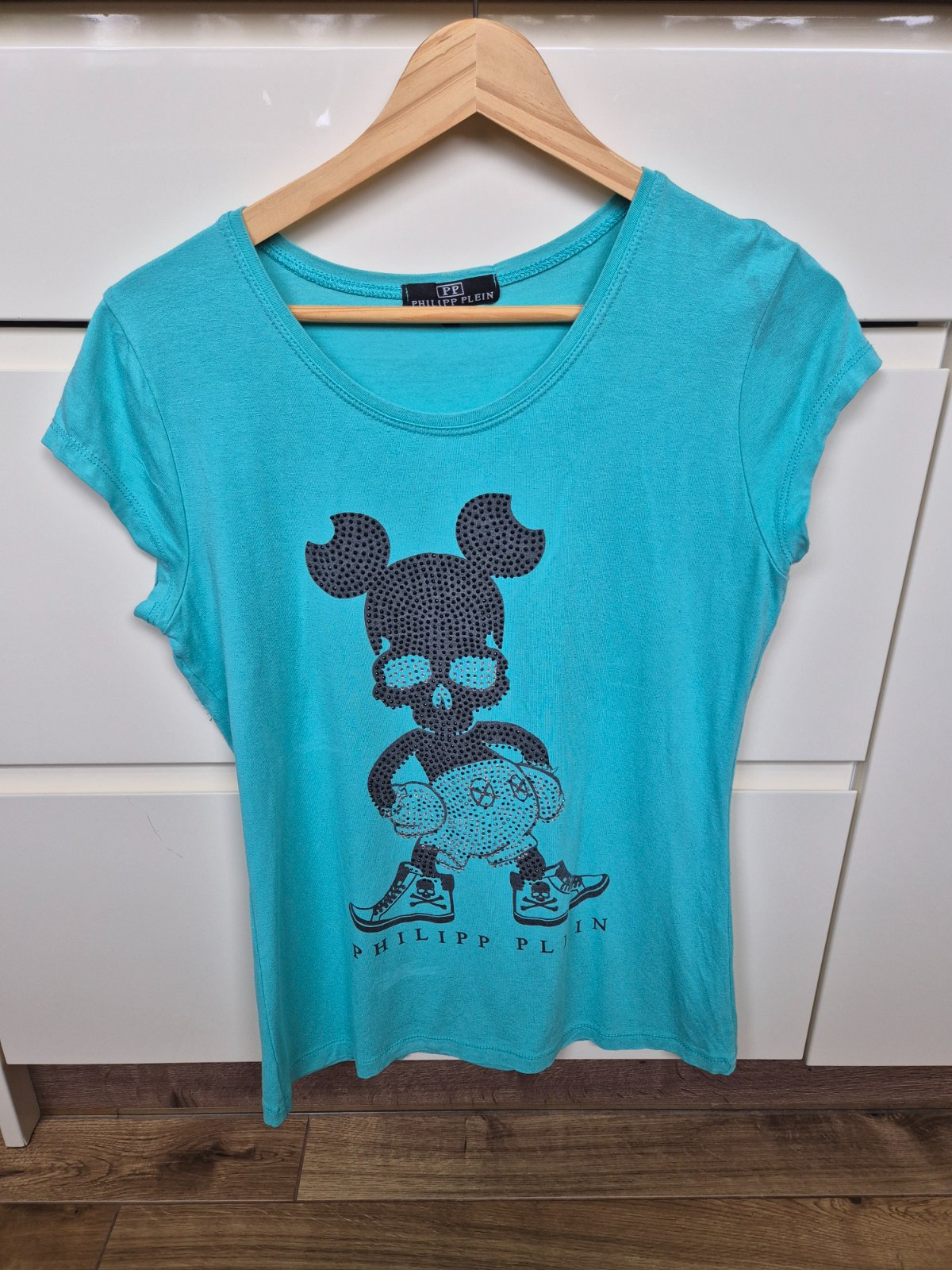Veľ: XL/XXL Mat. 95 bavlna, 5 elastan. Značkové elastické tričko je tyrkysovej farby, s krátkym rukávom. Výstrih do V. Predná časť je preložená do boku, kde sa zaviaže do mašličky, mierne nariase...