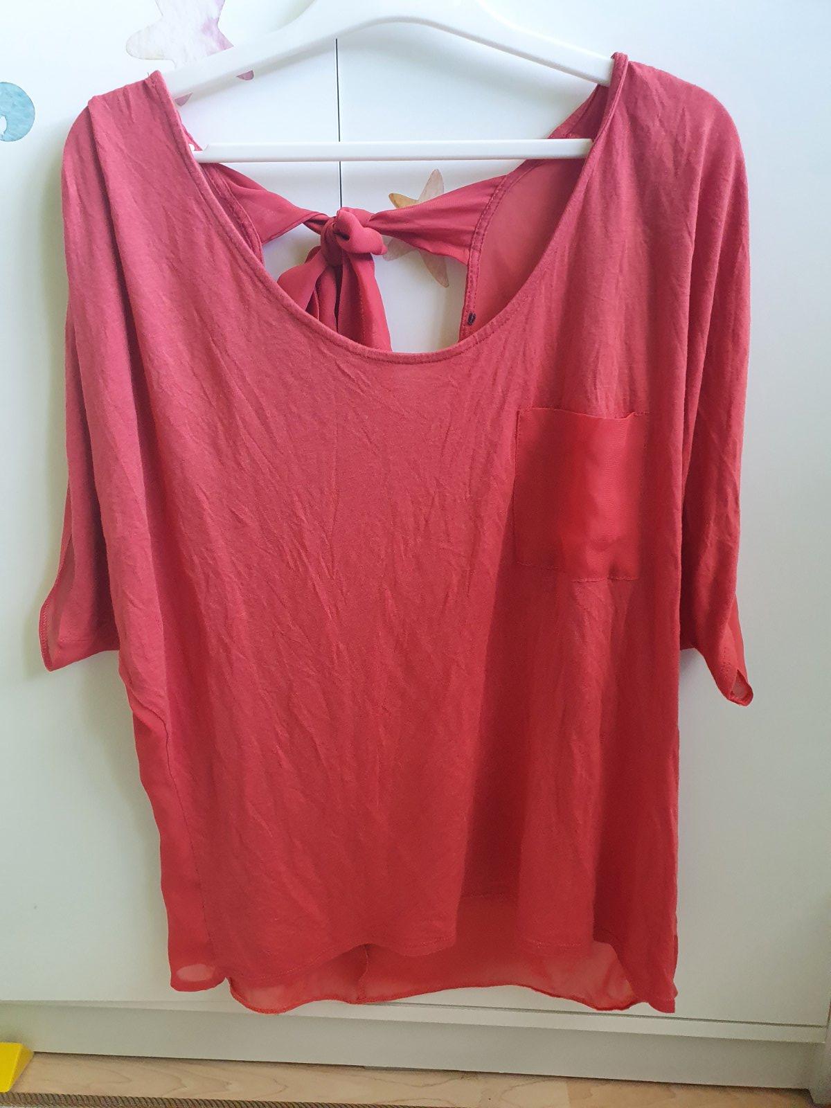 Dlhé tričko, nenosené, kúpila som M, ale podľa mňa je L, šírka pod prsiami 49x2cm mierne do A, dĺžka zad. dielu až 85cm, tenké, 95%viskóza, 5%elastán, jasná červená..