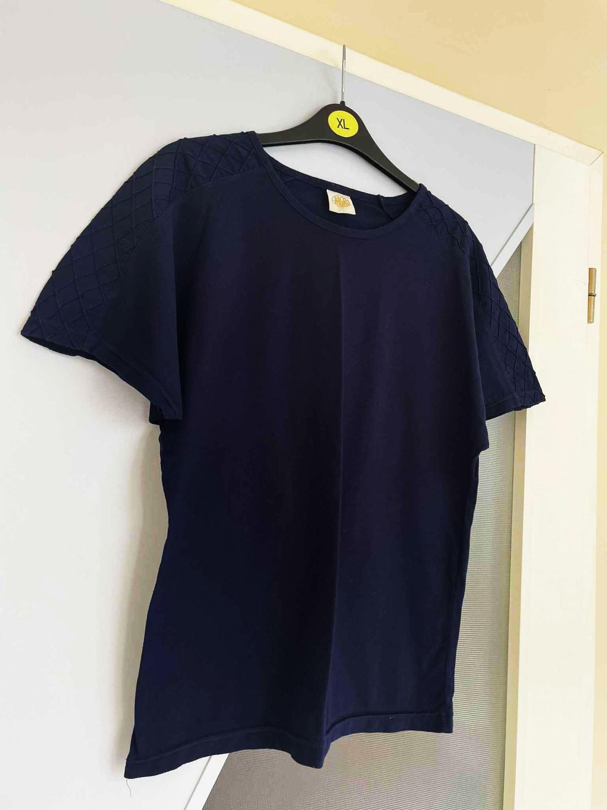 veľmi zachovalé tričko,na ramenách akoby popreštepované,rukávy krásne padajú - nie sú všité,pevný materiál,šírka na spodku = 48 x 2 cm,šírka v časti kde naväzuje rukáv = 55 x 2 cm , dlžka = 65 cm,parížsko modrá farba,obsahuje jemne syntetiku,č.42