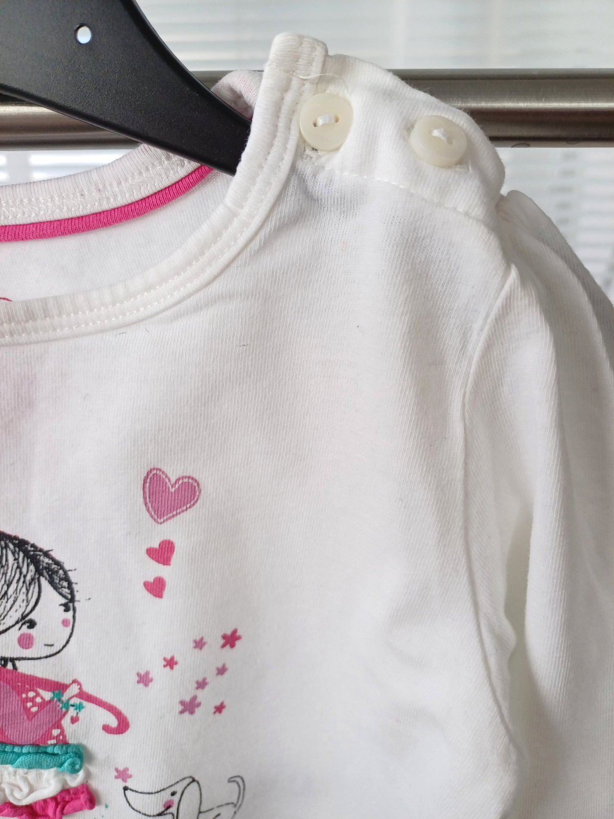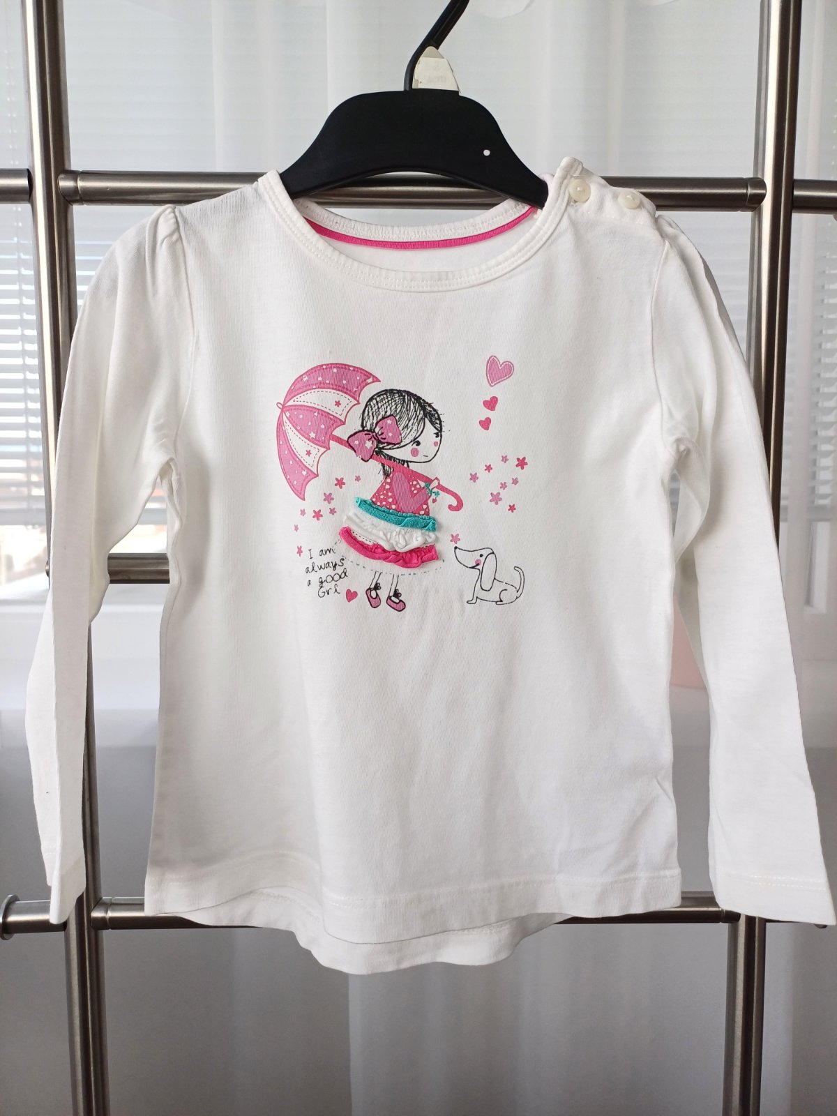 Tričko s dlhým rukávom, krémovej farby vo veľkosti 86/92 (12 - 24 mesiacov), zapínanie na gombičky na jednom pleci. Veľmi dobrý stav bez fľakov a poškodení. Na požiadanie rada premeriam.