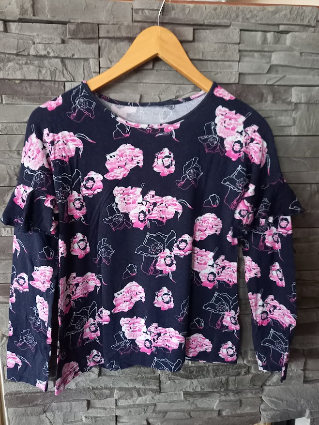 Tričko nosené. Na rukávoch sú volániky. Celková dĺžka 54, šírka 40 cm. Cena 1 €+poštovné.