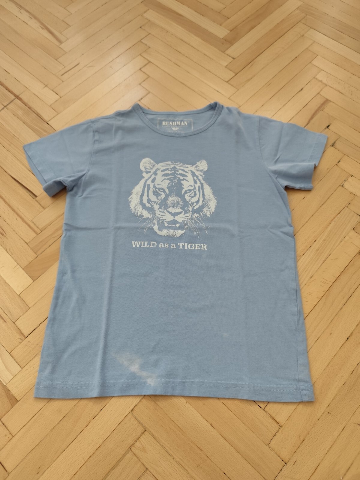 Tričko s tigrom, po jednom dieťatku. V čistiarni nám odstránili okrem neodstrániteľného fľaku aj farbu vpredu... inak bez poškodení.