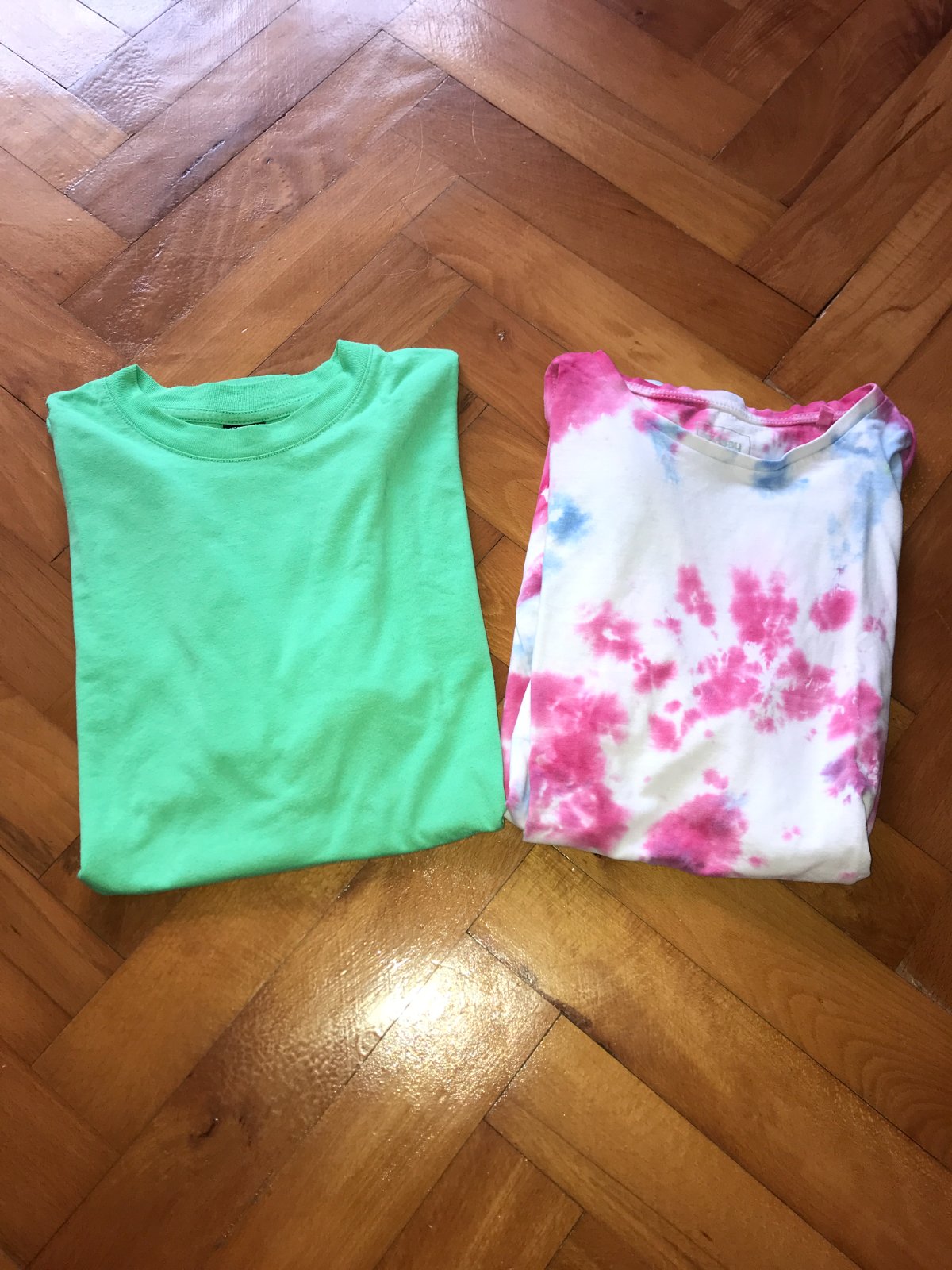 zelené veľkosť - S a farebné veľkosť - XL (no obe reálne je to veľkosť M/L)