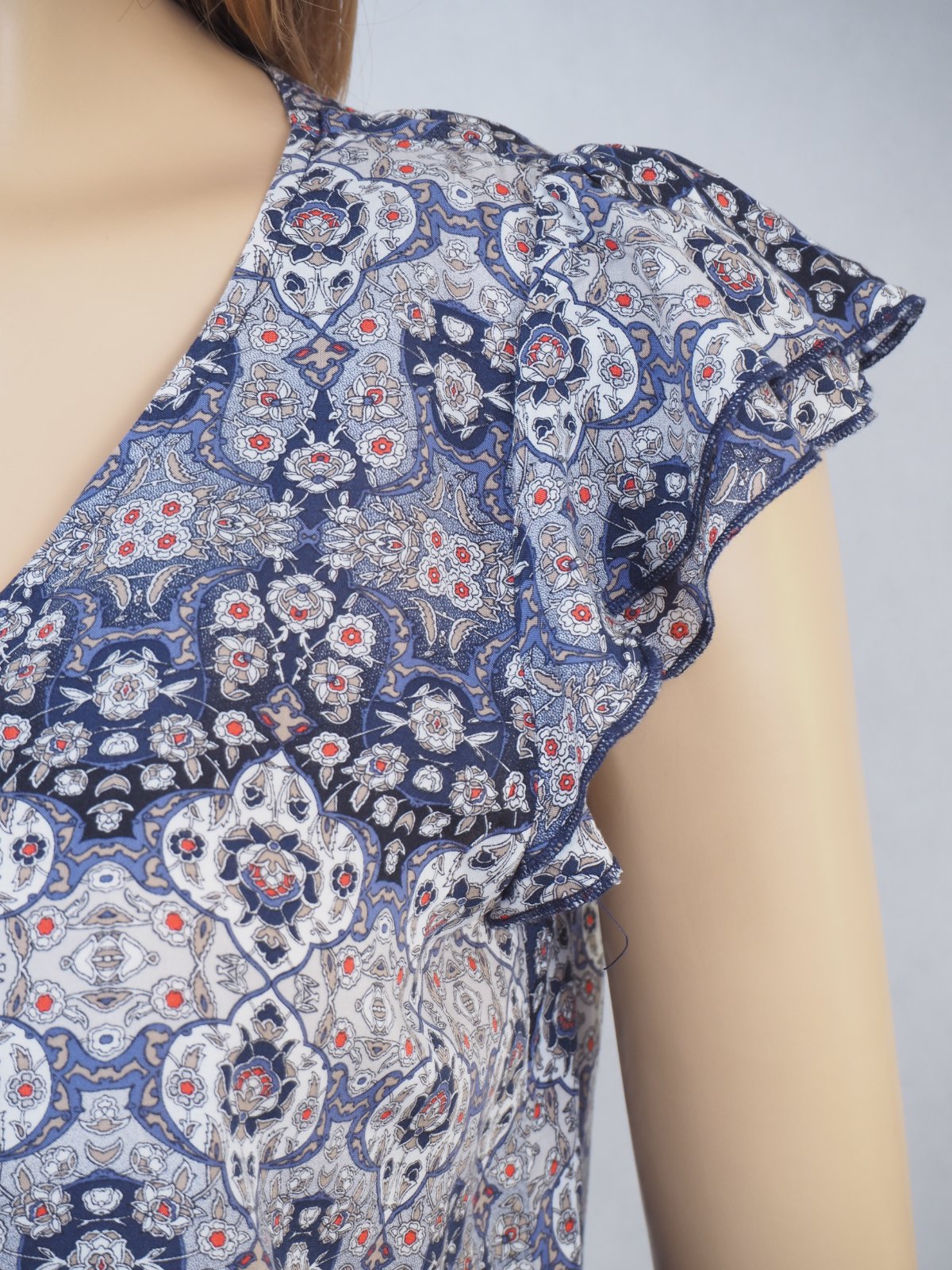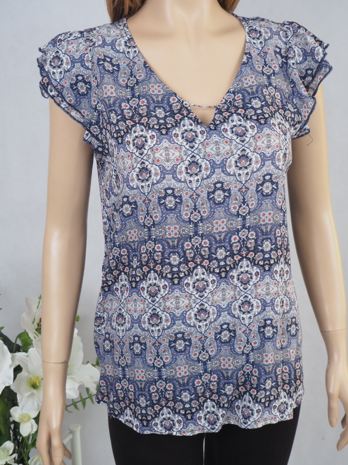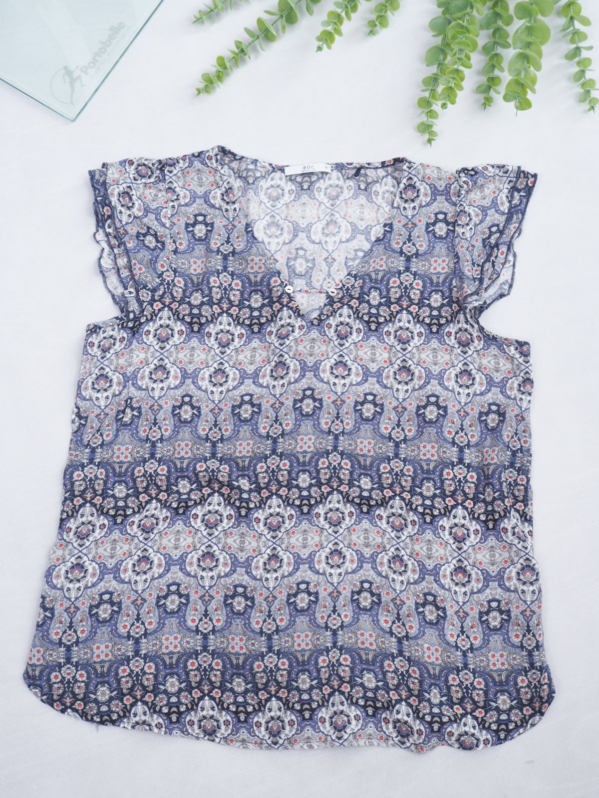 Kvalitný letný top bielo-modrý, materiál vzdušný 100% viskóza, super stav.