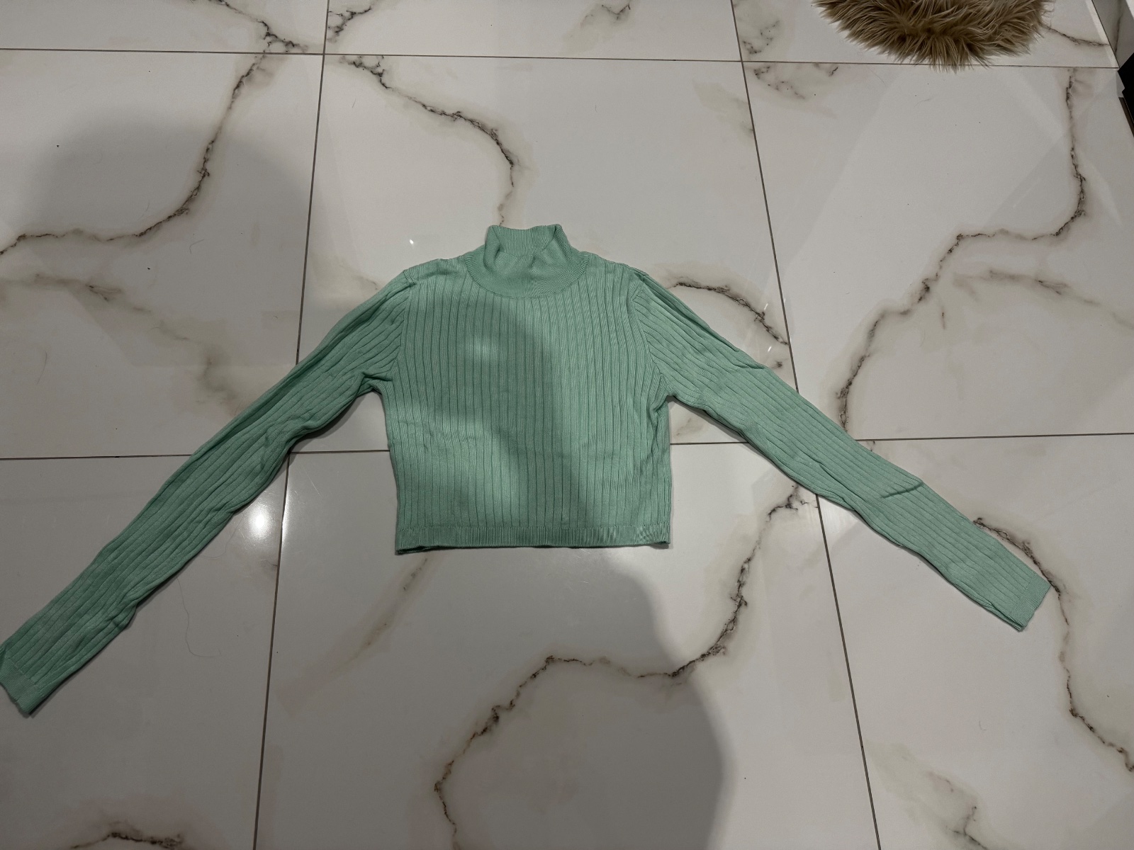Zaujímavá mikina, resp. tričko s dlhým rukávom, v jemnej mentolovej farbe. Na ramenách má peknú striebornú aplikáciu s kvetinami s efektom ošúchania. Mikina je nosená, bez poškodenia, ale je na nej...