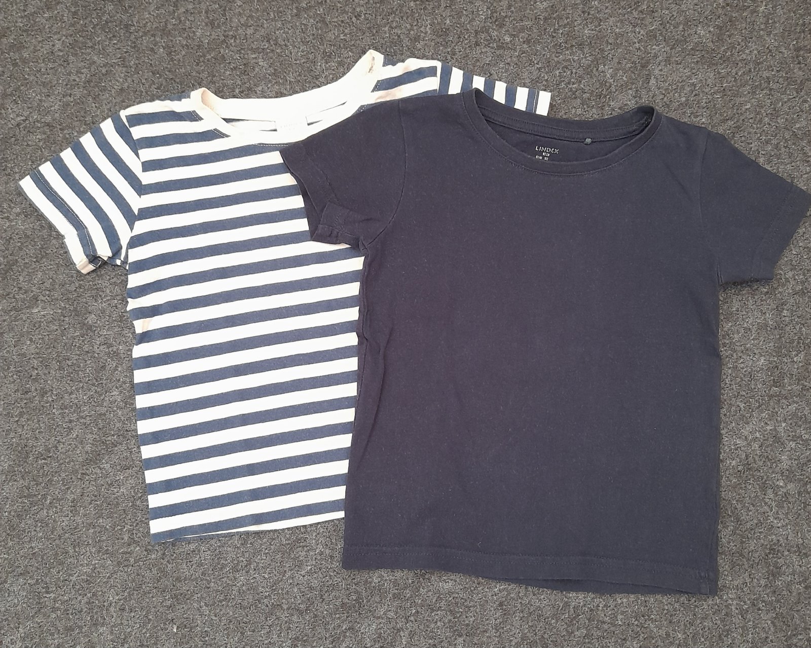 Tmavomodré a pásikavé tričko. Bez poškodení, nevyblednuté. Cena 3€ za kus. Spolu 5€