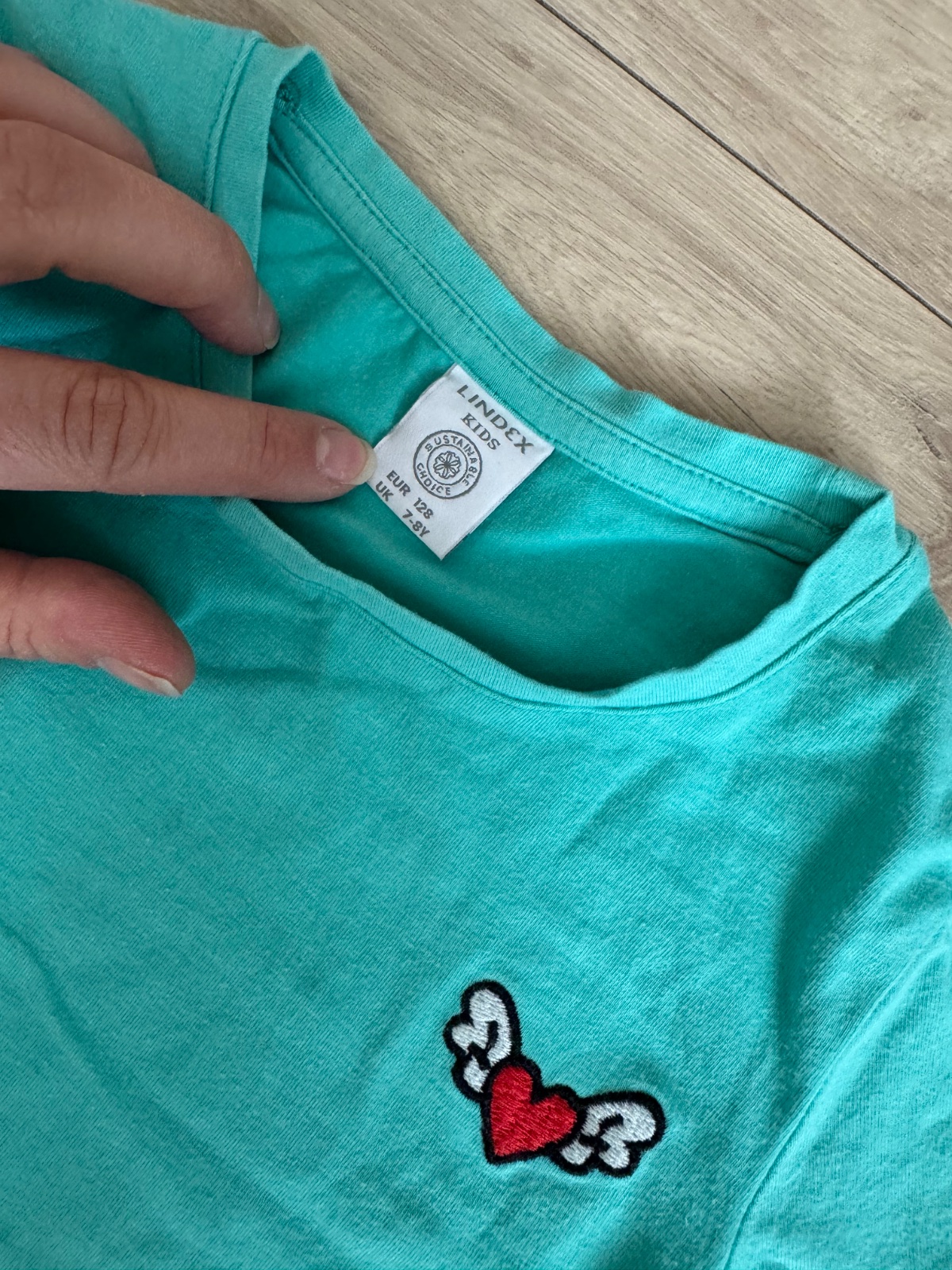 Krásne lososove tricko, blúzka košieľka sukni, nohaviciach, rifliam. Kvalitné, ako nové. Zbierkane okolo krku, rukávov. LINDEX, 128, 7-8-9rokov. Dlzka 50cm.