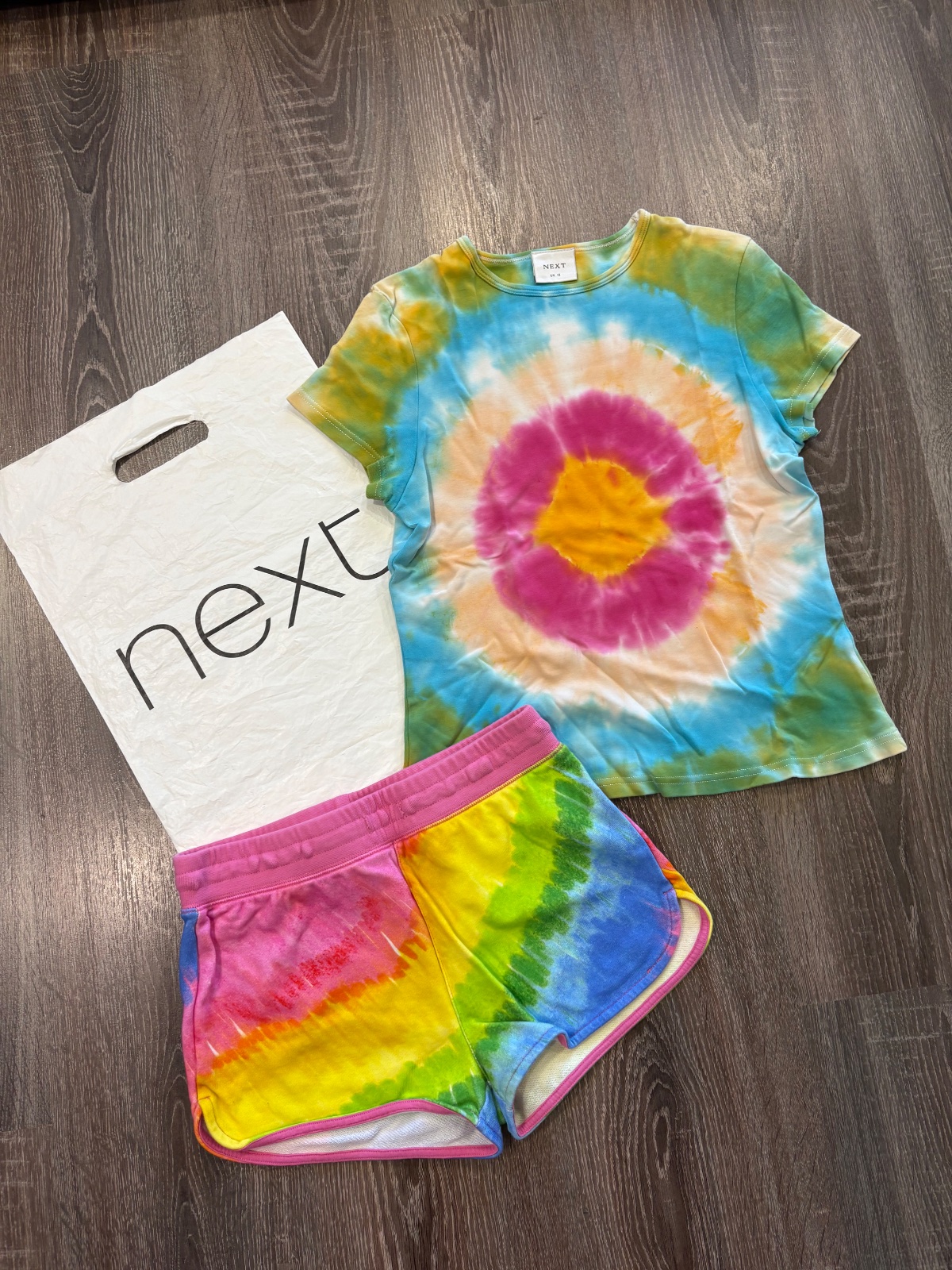 05.Next farebne tricko na leto vo velkosti 12 rokov,dlzka je 50cm a sirka v podpazusi je od 42x2cm do 51x2cm.Kratasy znacky Stella McCartney nosili sme to spolu , velkost 12 rokov ,dlzka je 24cm a sirka v pase je od 33x2cm do 43x2cm