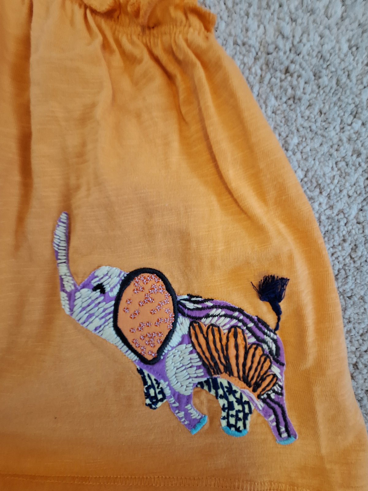 Oranžové so sloníkom oblečené asi 2-3x, kvetované tričko nenosené, nové.