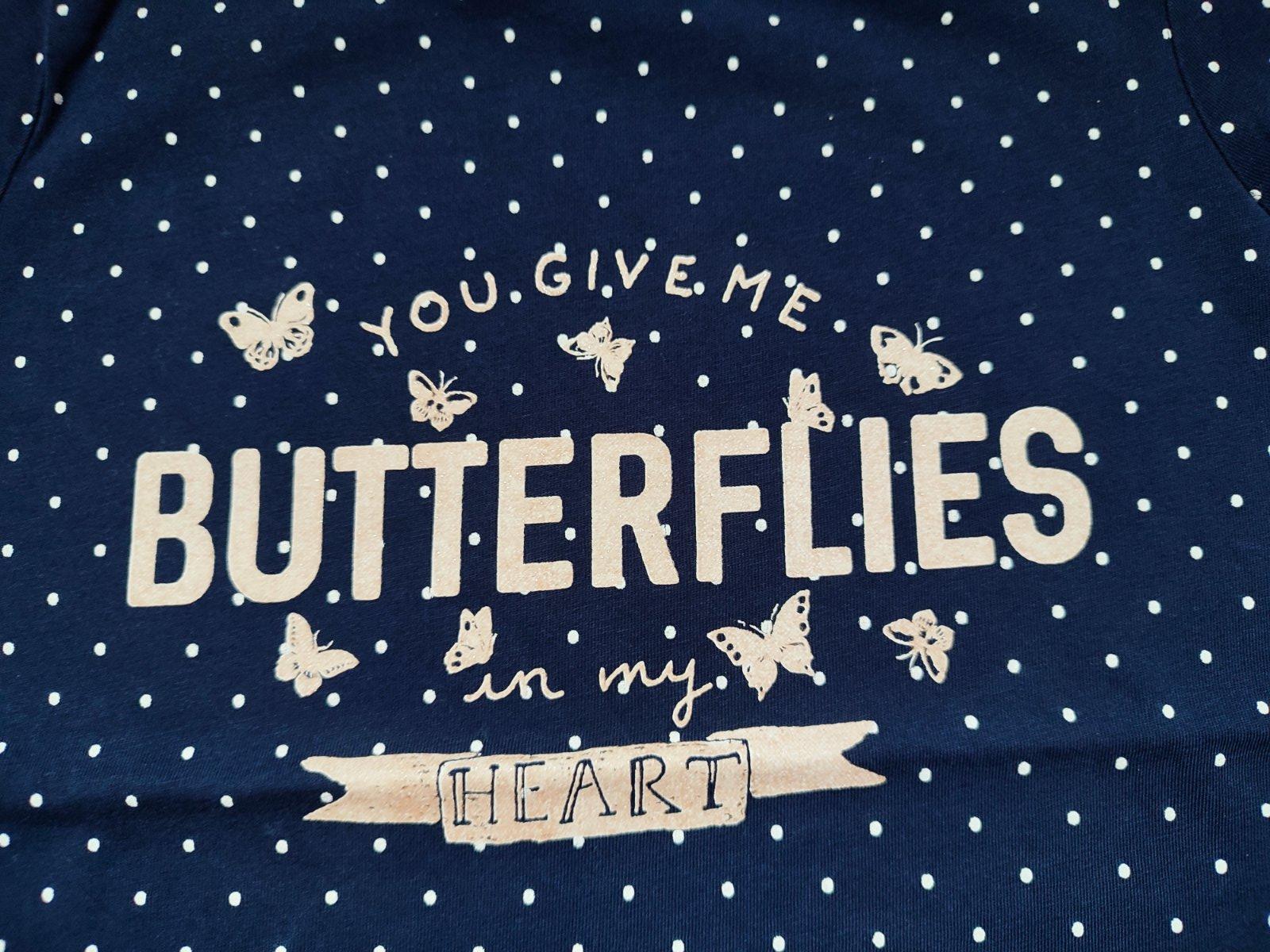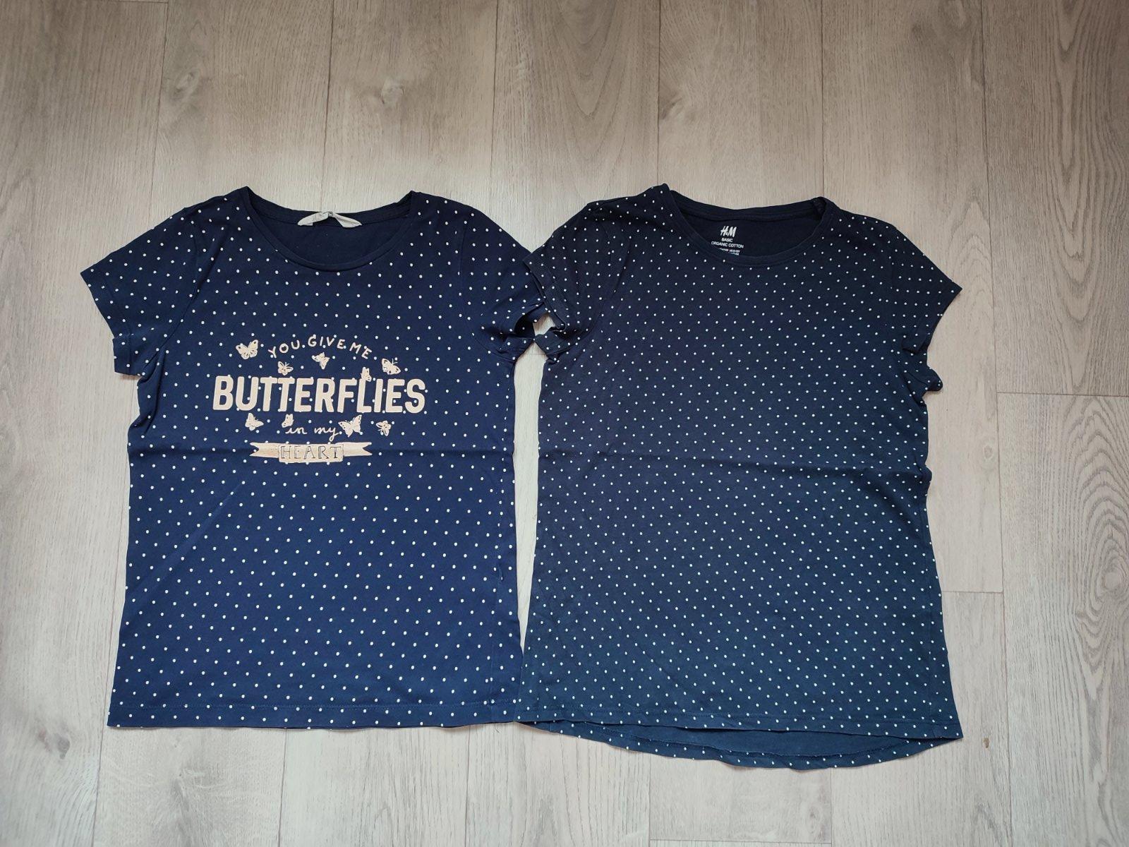 Dievcenske tricko H&M vel. 134/140 kolekcia Organic cotton, tmavomodre s bledymi bodkami, dlzka 48 cm, 95% bavlna + 5% elastan, super stav