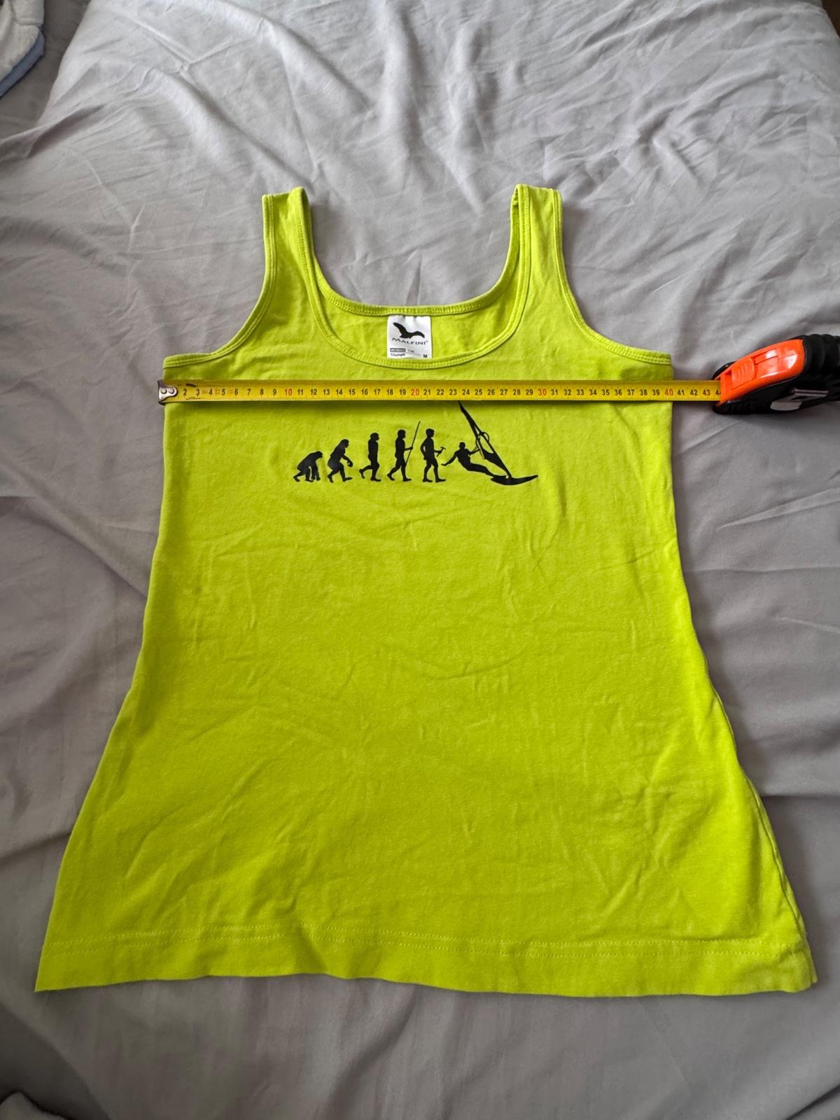 Dobrý nosený stav. Dlžka aj s ramienkami 45, šírka 2x33. Elastické, bavlna.