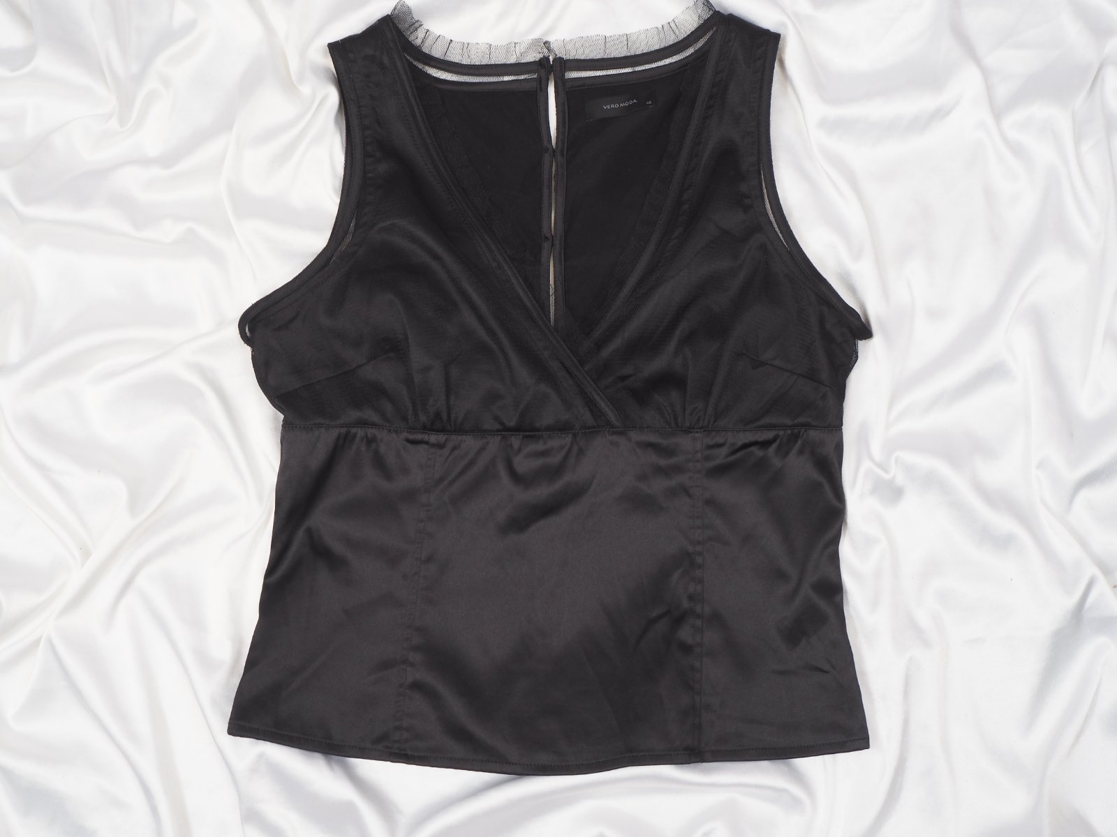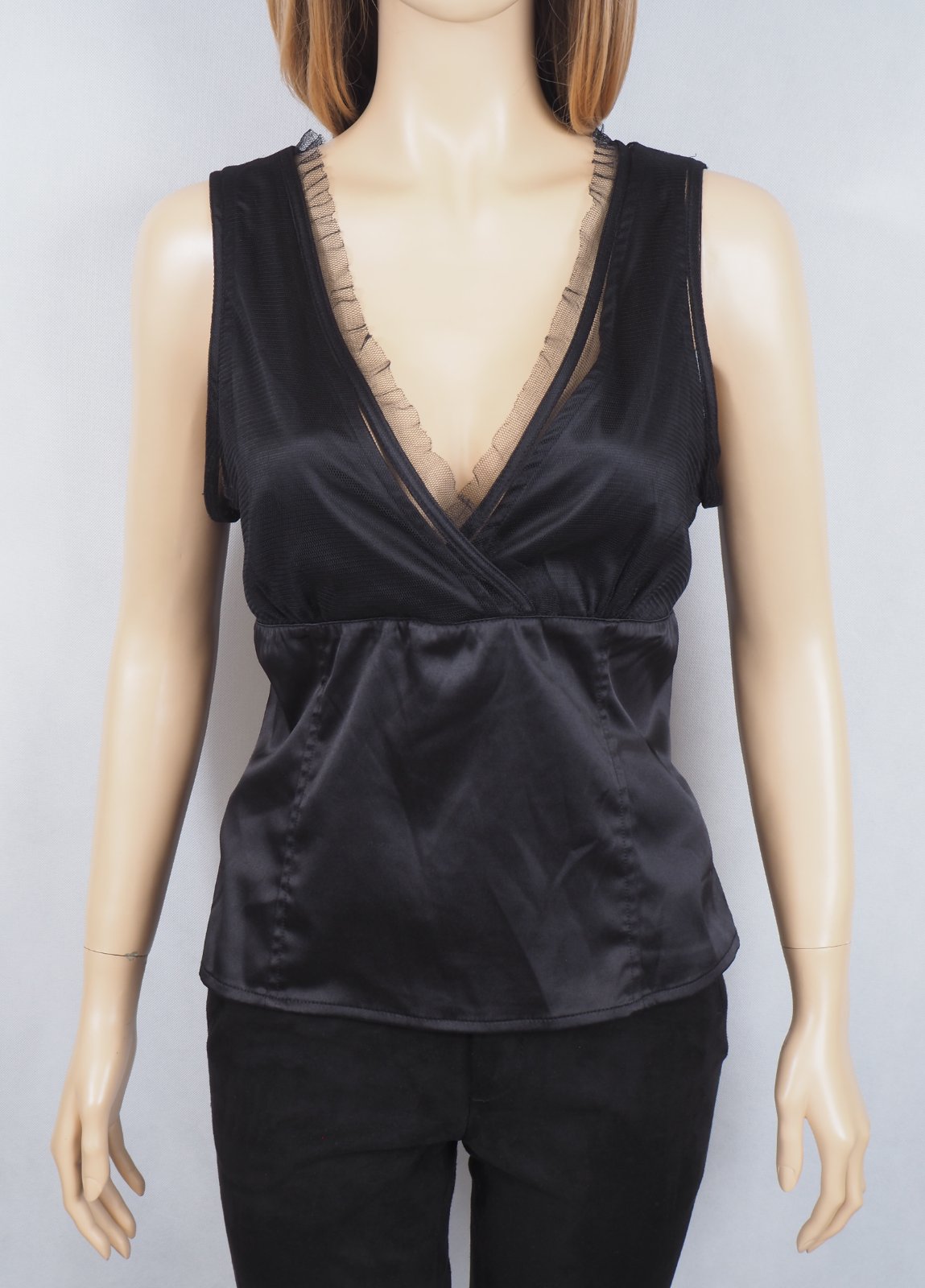 Kvalitný elegantný saténový top, zapínanie vzadu na zips a gombíky, materiál 97% polyester, 3% elastan, super stav.