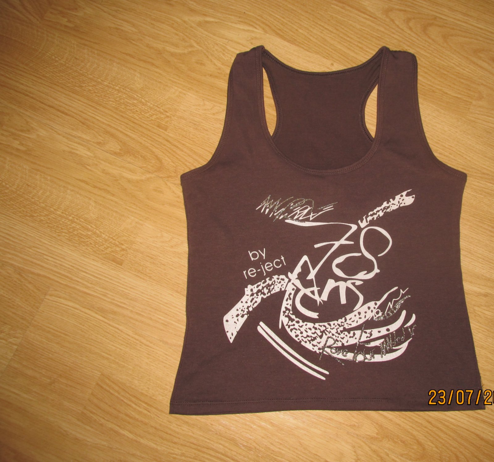 Predám hnedý topík zo zaujímavým nápisom v predu a zlatistým efektom.