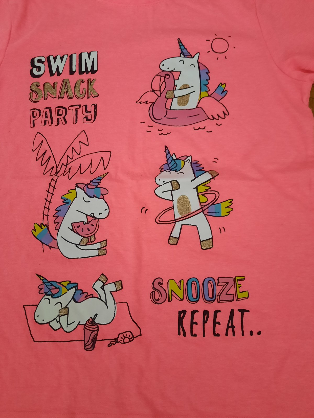 Pekné ružové tričko s veselým vzorom na prednej časti. Veľmi dobrý stav.