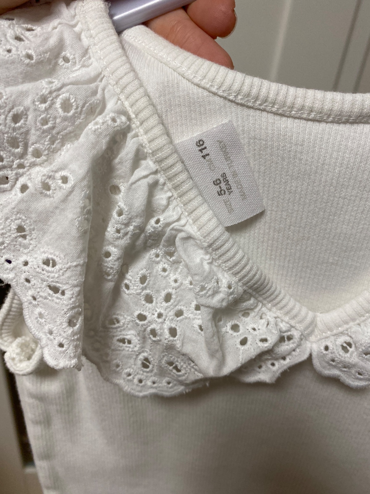 Raz oblečené tričko, materiál ľan, veľkosť písaná na 5/6 rokov (skôr 6). Farba off white, bielo-krémová.