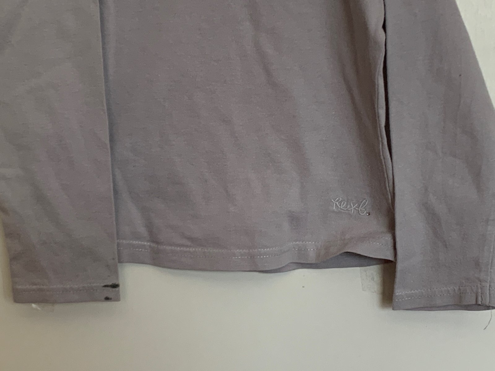 Nosené tričko s fľakom na rukáve.