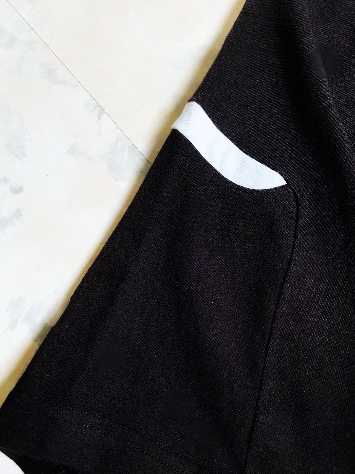 sýto čierne hrubšie kvalitné značkové tričko,dlžka celkom = 85 cm, vzadu 85 cm ( vzadu je o trocha dlhšie ),dlžka meraná na boku,od pazuchy smerom dolu = 51 cm,šírka = 67 x 2 cm,pekne riešené,vzadu na vzore akoby jemne opadla farba - ale dá sa to celé zlúpať,ak by niekomu vadilo - viď detailna posl. fotka