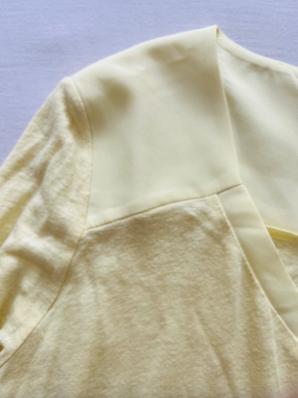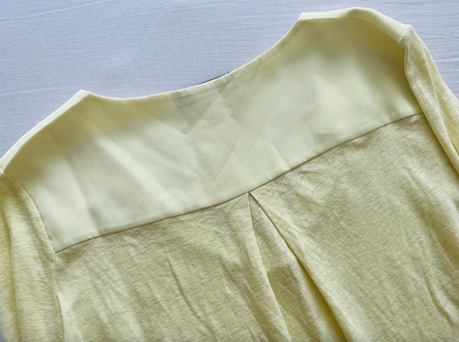 Minimálne nosene. Farba krásna žltá nie ako na foto. Super na jar leto. Veľmi príjemná bavlna . Veľkosť písaná M ale sedí skôr na Sko