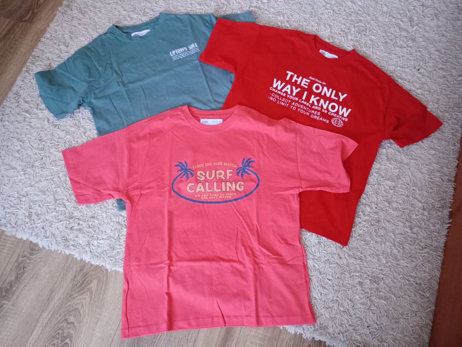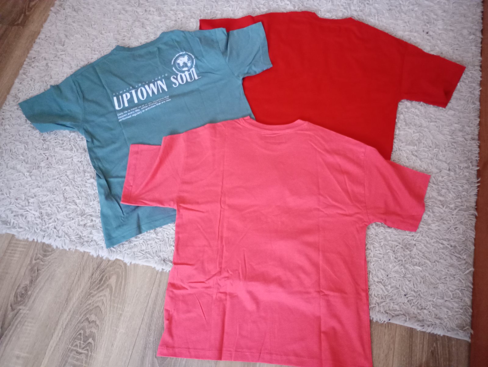 Krásne, raz vzaté, jedno s visackou...su oversize, takze aj na 158, farba červená, lososová a tmavo zelená...na foto nevynikne