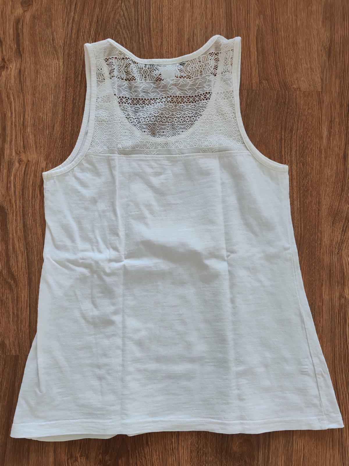 2 tielka v peknom nosenom stave bez poškodení, Esmara XS je dolu s čipkou, opraté asi 2x, druhé tielko - Burbery- šírka 37cm, dĺžka 47cm. Cena spolu za obidve 6€.