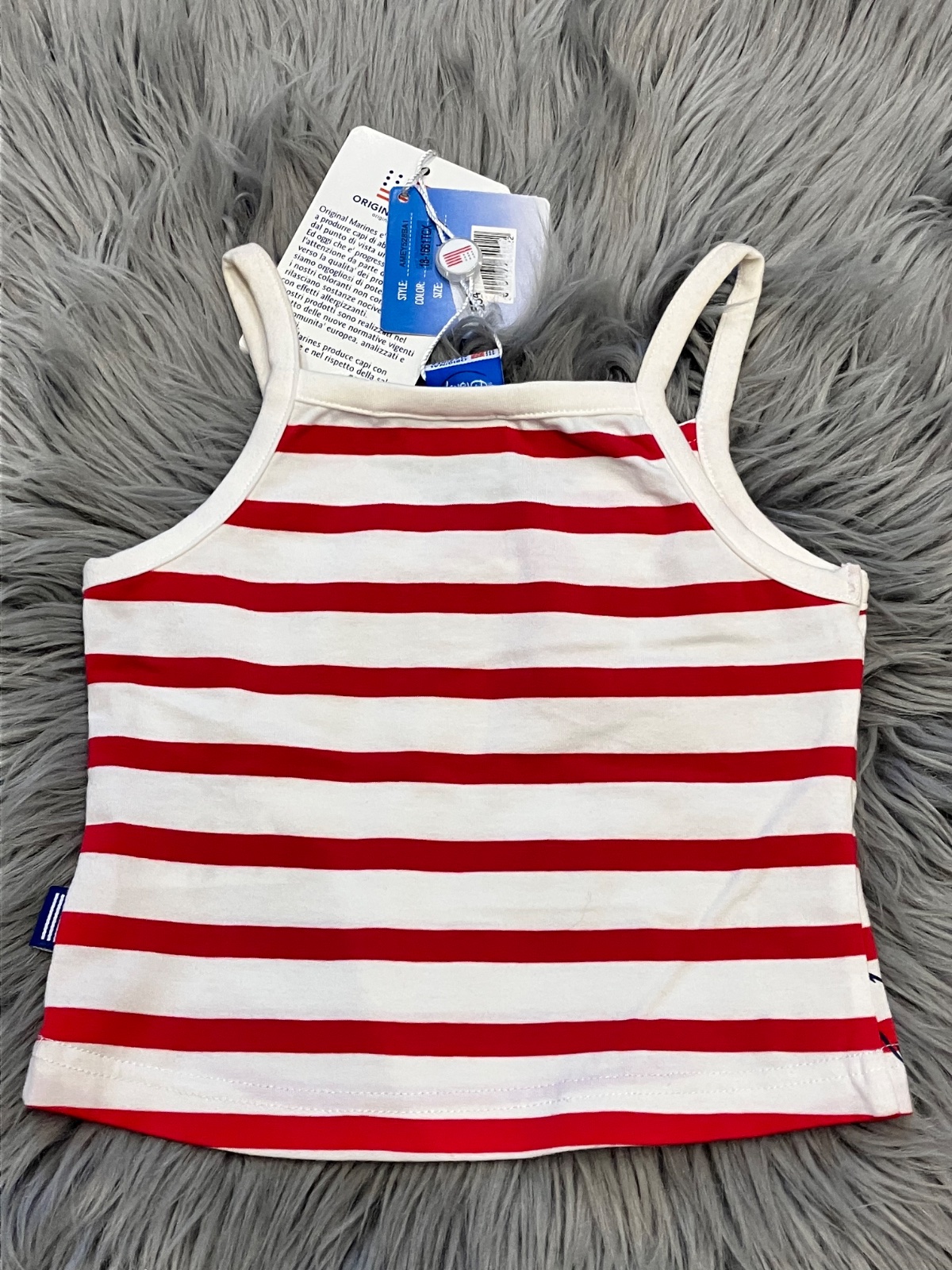 Dojčenské dievčenské tričko s krátkym rukávom a bez rukávov značky Original Marines. Elastické. Pre 6-9 mes. Materiál 100%bavlna.