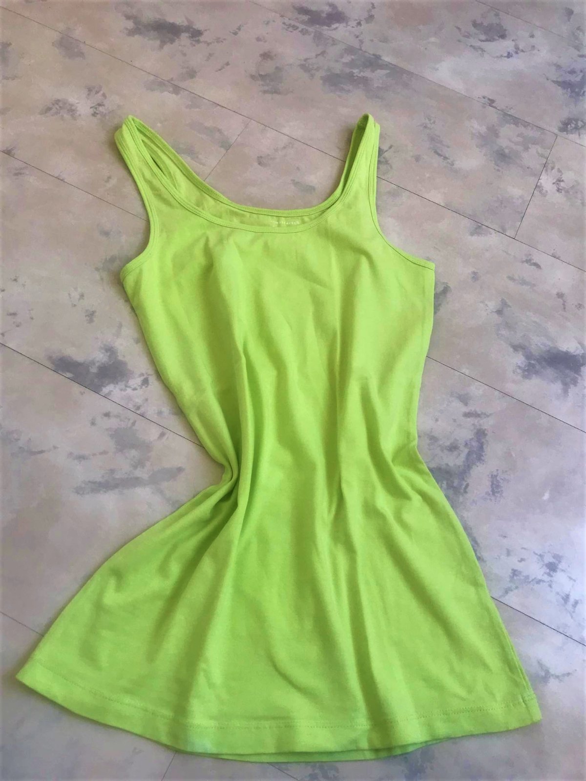 kvalitné nenosené - iba preprané po kladovaní tielko,krásne vypracované,nádjherná letná jemne neónková farba