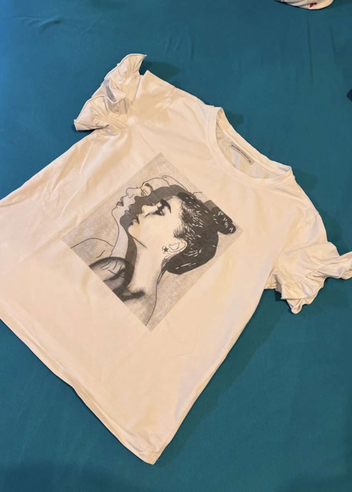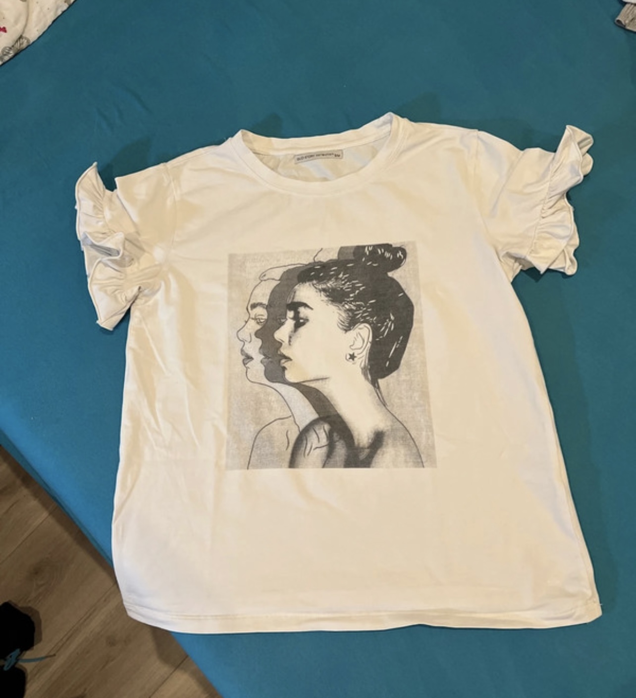 Dámske tričko, veľkosť medzi S-M, raz oblečené. Cena 6 eur plus poštovné.