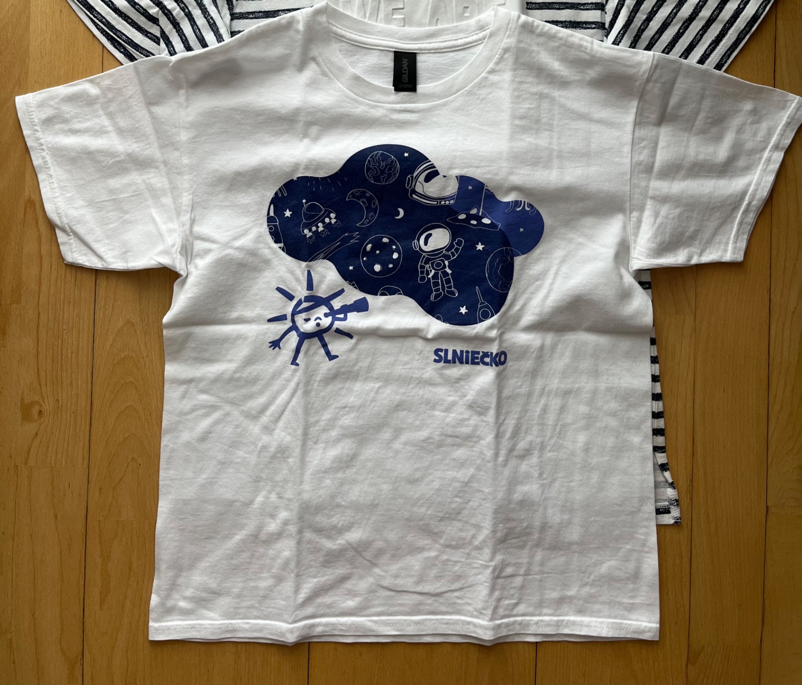 Bavlene obyc tricko s potlačou skoly v prirode, oblecene 1x v tábore, bez flakov. Zadna dlzka od krku 53 cm, sirka predny/zadny diel 43 cm. BA - Ruzinov.