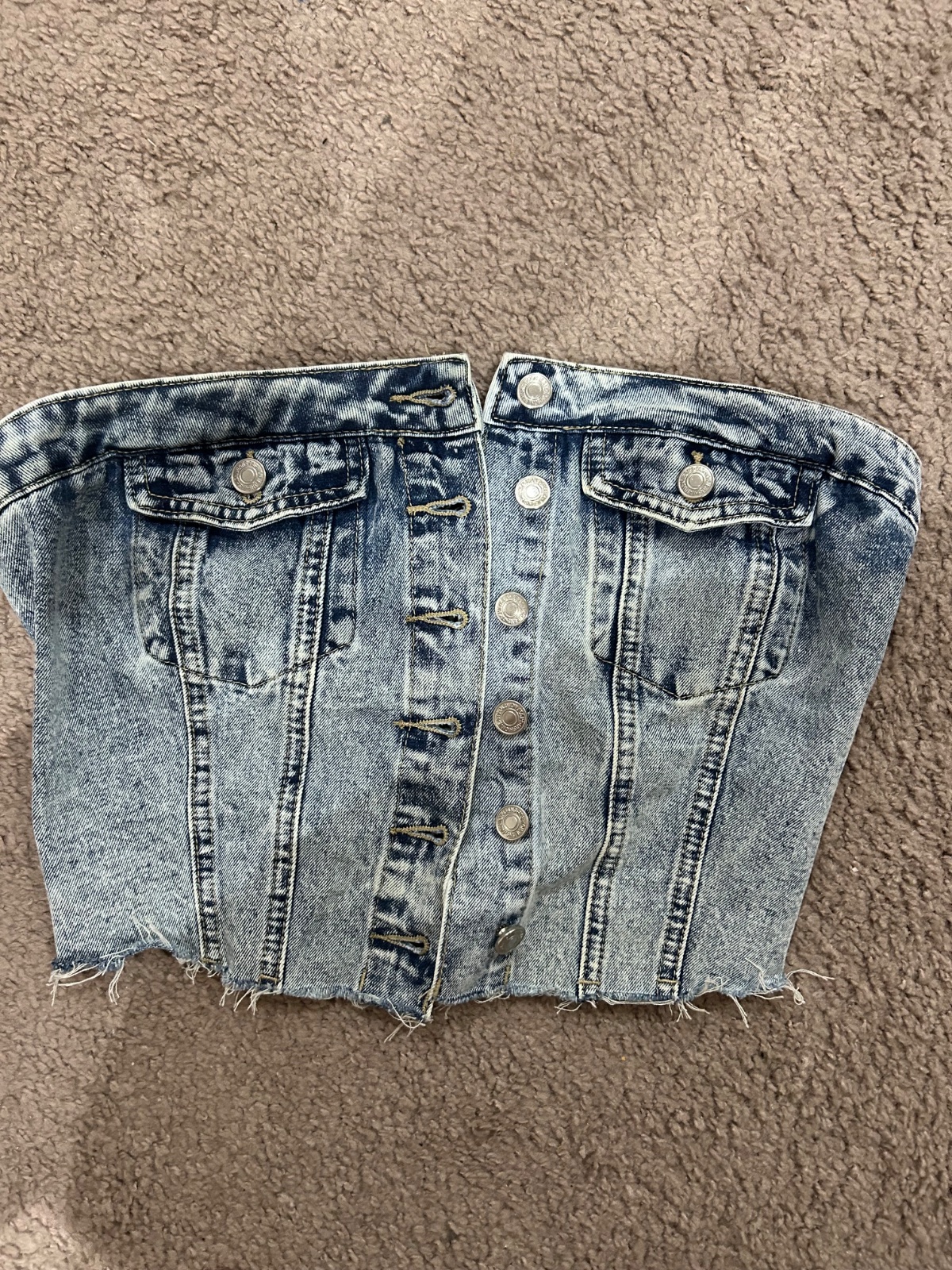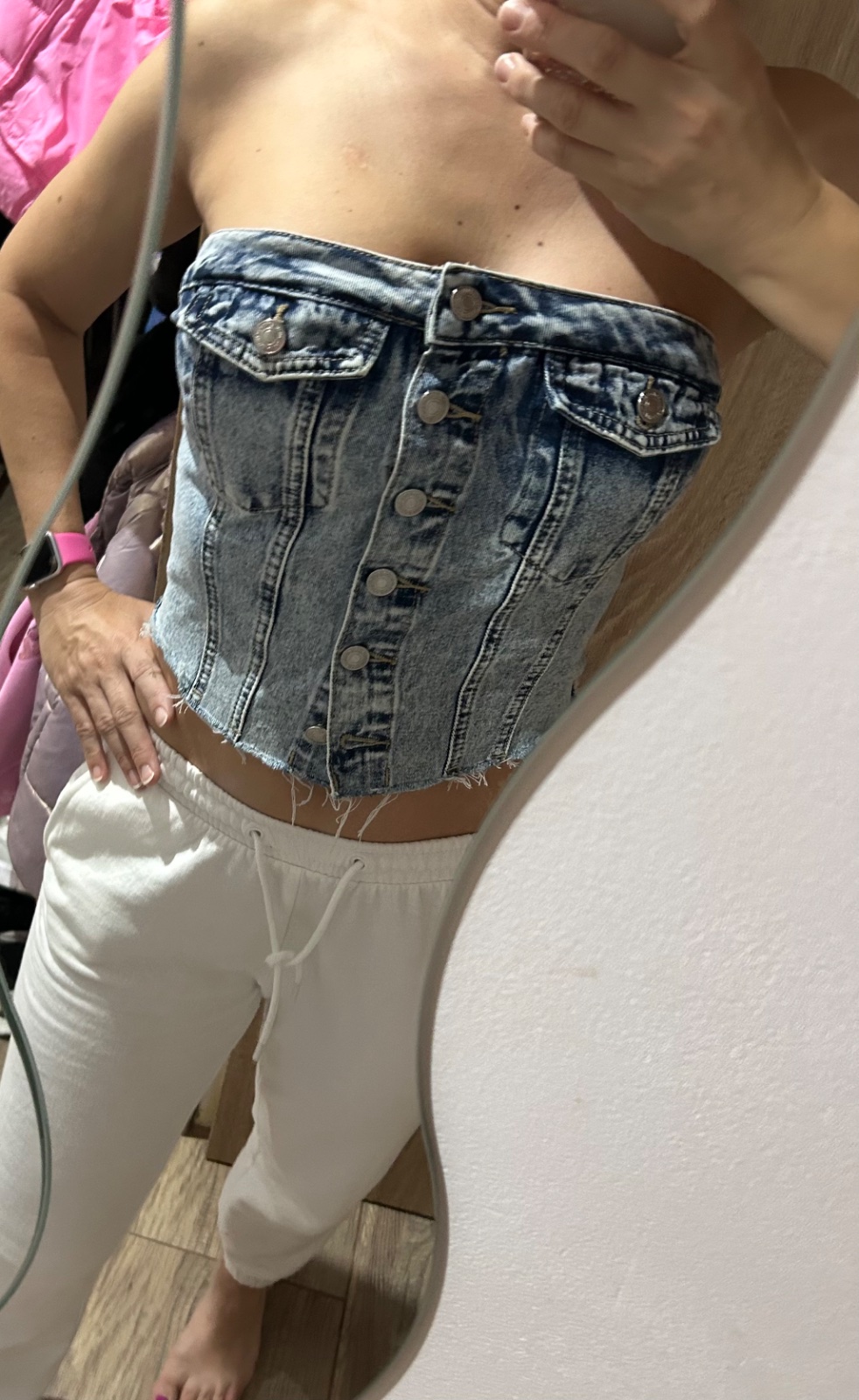 krasny riflovy top-vzadu na gumu,pohodlny,prisposobi sa ...1xobleceny-vyborny stav(nevynosim)