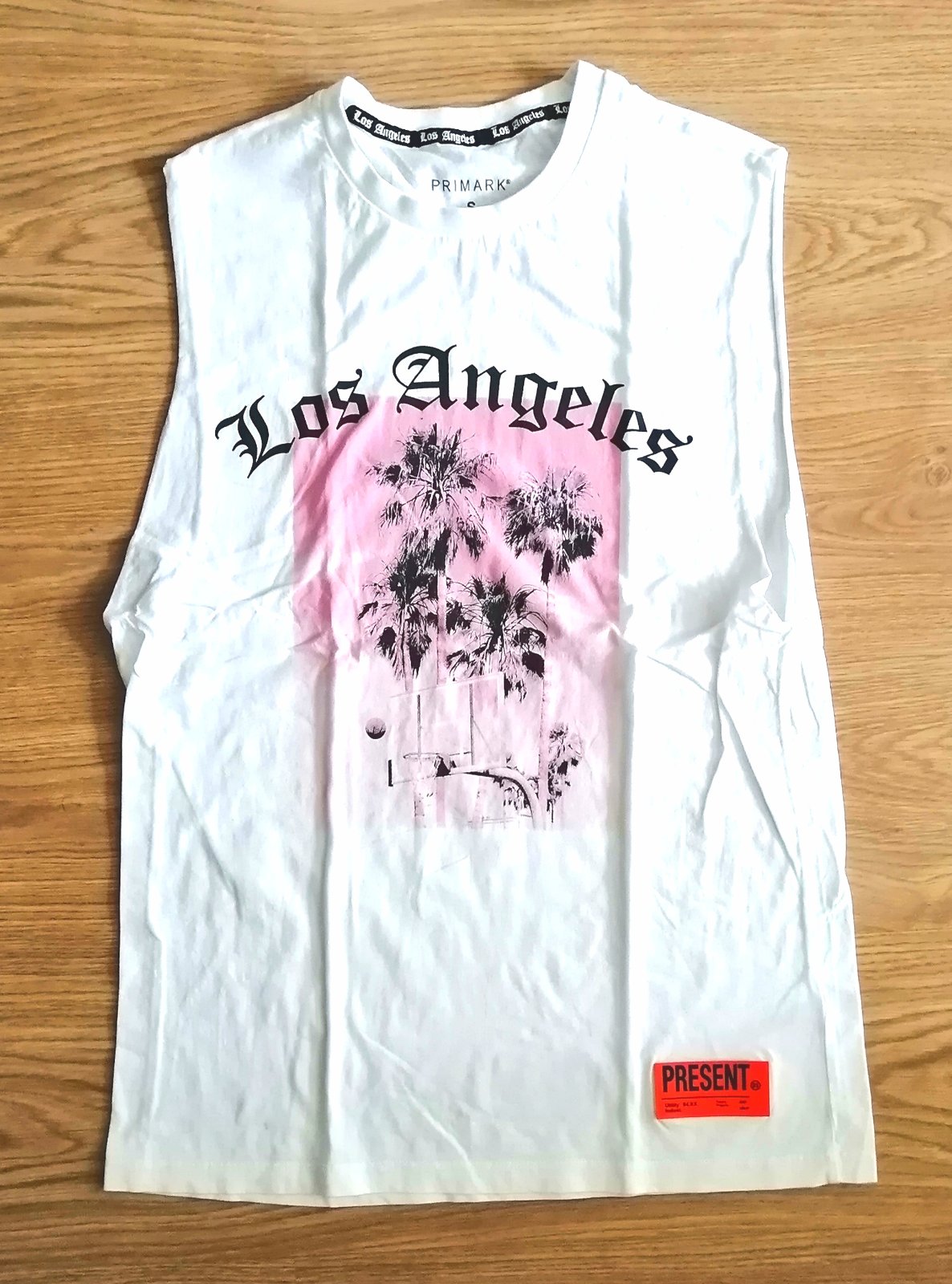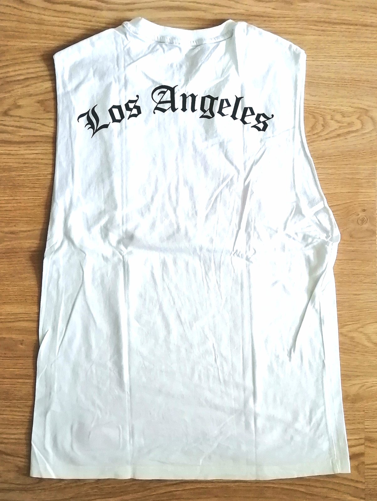 Kvalitné biele bavlnené pánske /chlapčenské tričko bez rukávov, zn. Primark, vpredu a vzadu s potlačou.