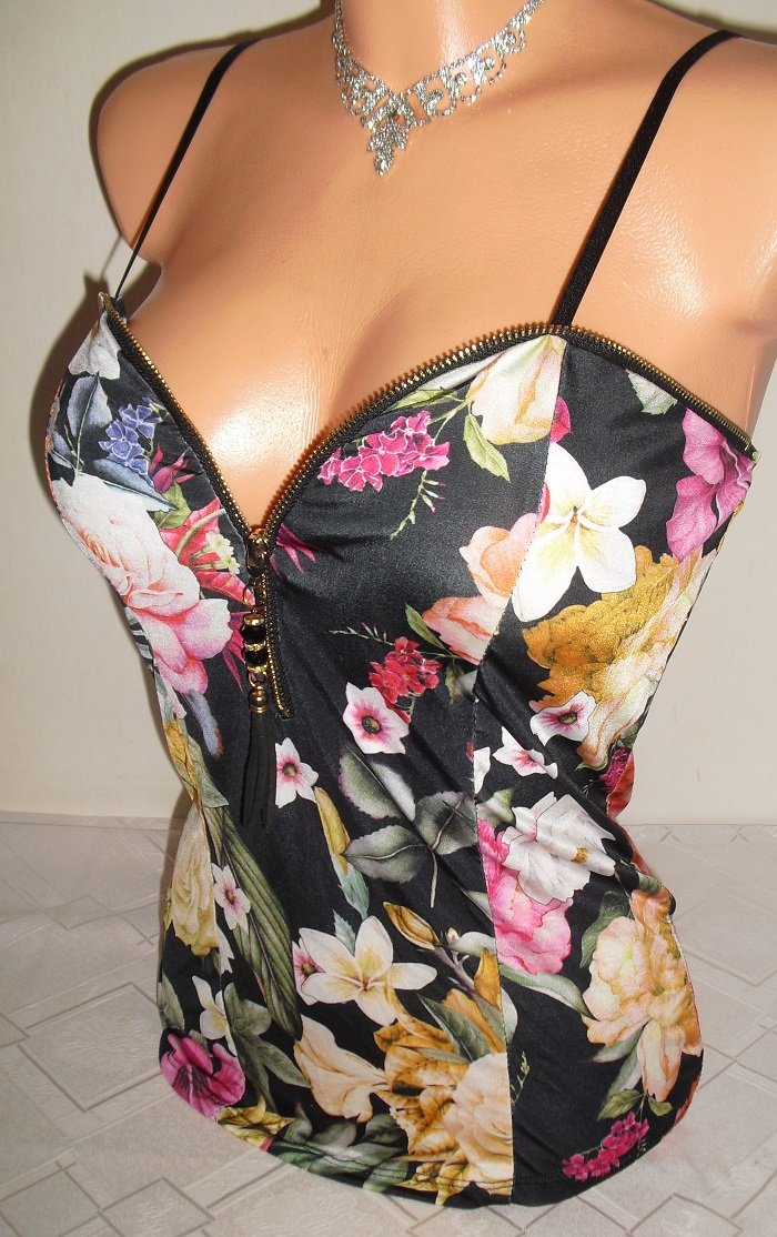 predam nadherny taliansky italy topik, na predu sa zapina polohuje podla poprsia a vystihu,nadhernom stave, velkost ide na s/m, m. sirka pod poprsim 38 cm x 2 az 43 cm x 2, dlzka cca celkova s ramienkami 59 cm, su posuvatelne, od vrchu kosickov dole 47,5 cm.