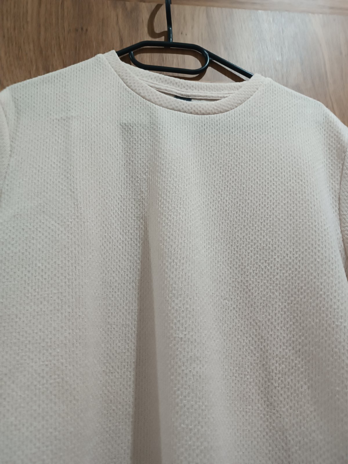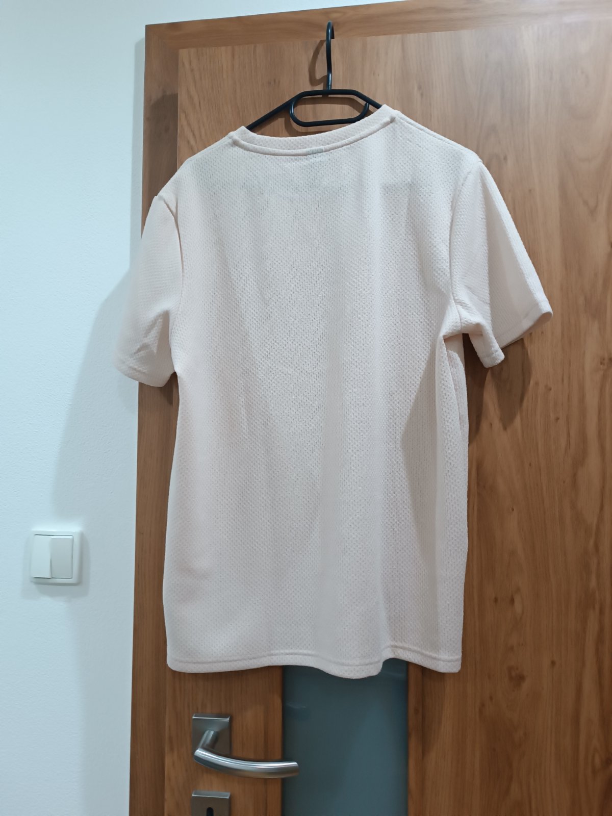 predám nepoškodené tričko 99% bavlna, 1% viscose farba je béžová s šedomodrým akoby podkladom - čiarky všade dĺžka - 66cm, šírka - 55cm , ramená - 50cm