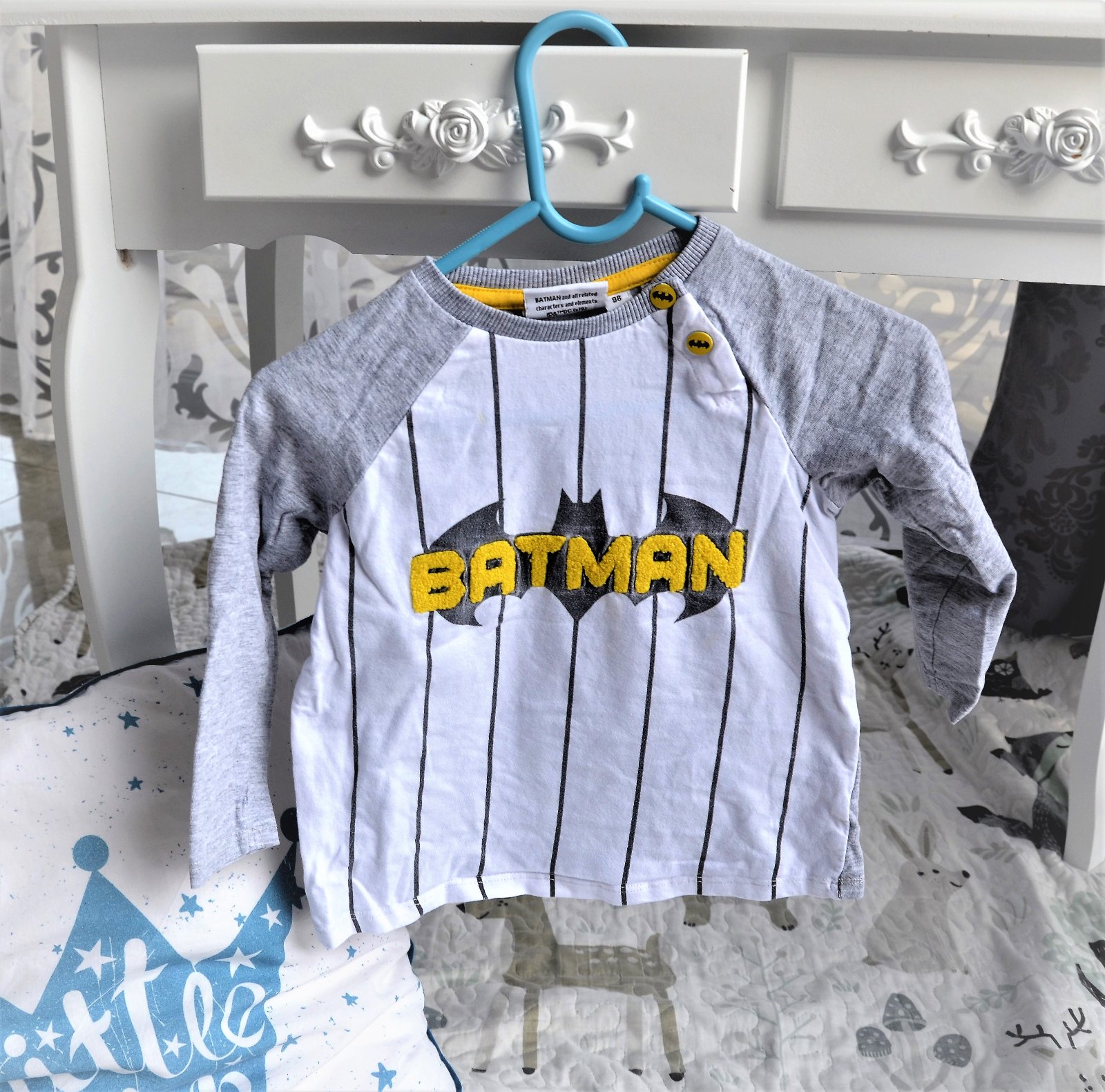 nevymieňam!!pár x oblečené,veľkosť písaná 98 ale určite je menšie,premerajte-dĺžka 35,5cm,šírka 2 x 30,5cm,rukáv od krku 33cm..kuk aj na iné moje inzerát