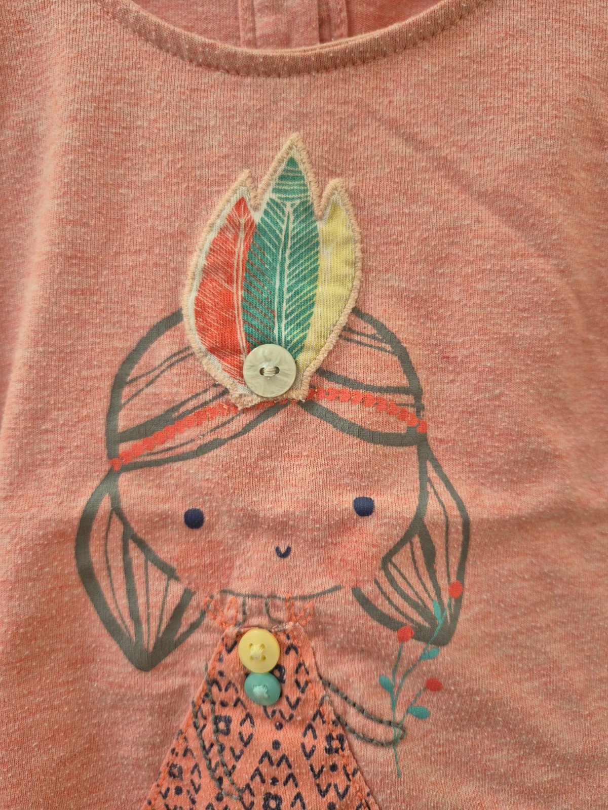 Marhulkové tričko s nápisom HAPPY, na jednej strane pri krku 2 gombíky, v dobrom stave
