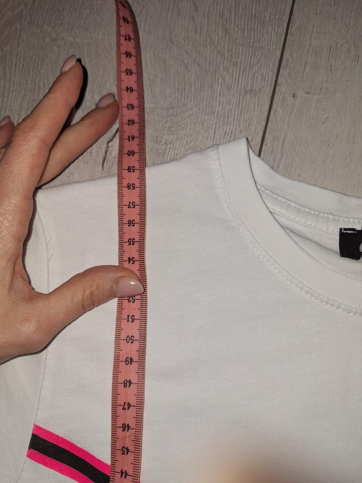 Malinko nosene, velkost udana vacsia ale podla mna tak 152. Farba je krasna biela, fotky zkresluju.