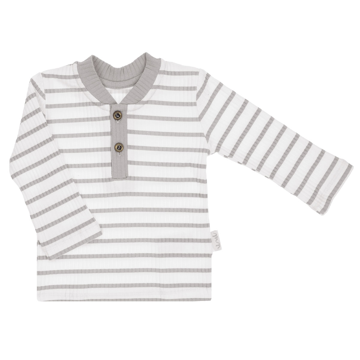 Chlapčenská polokošeľa s dlhým rukávom z bielej bavlny s elastanom a sivými pásikmi.